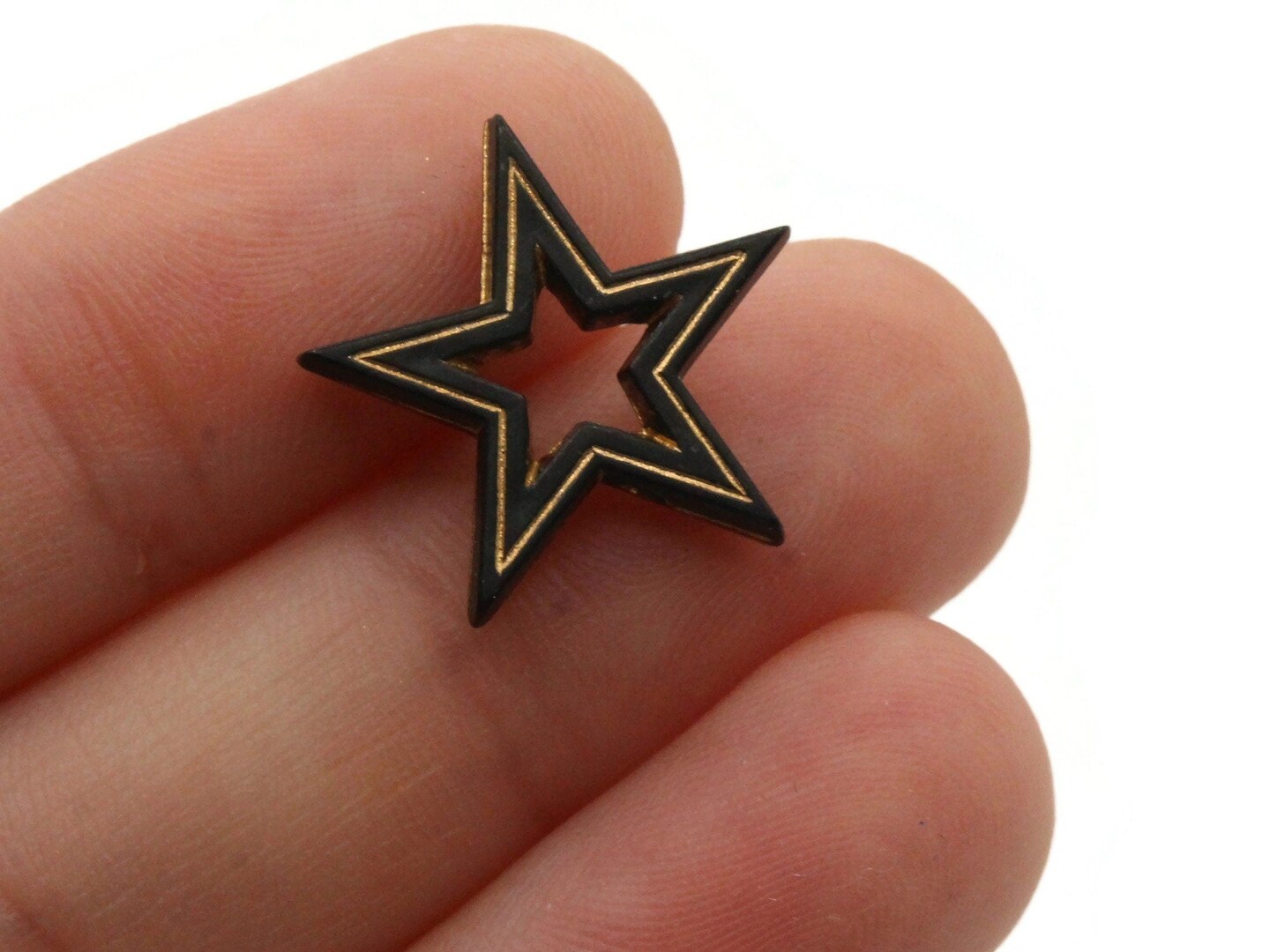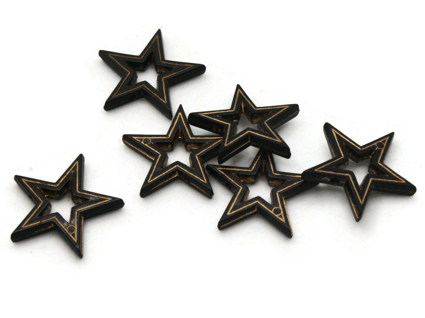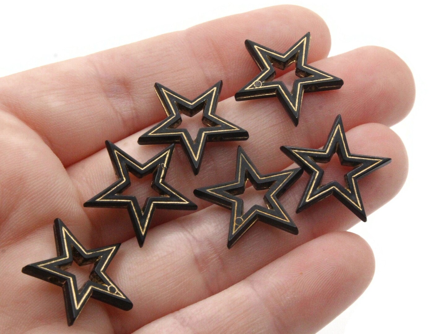 6 19mm Black Star Beads with Gold Details- Vintage Plastic Bead Frames