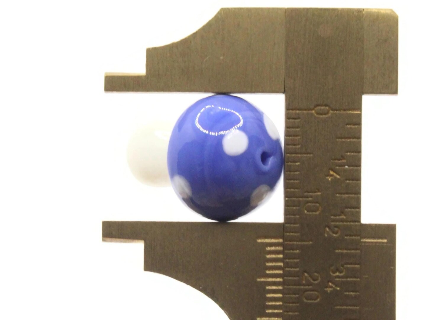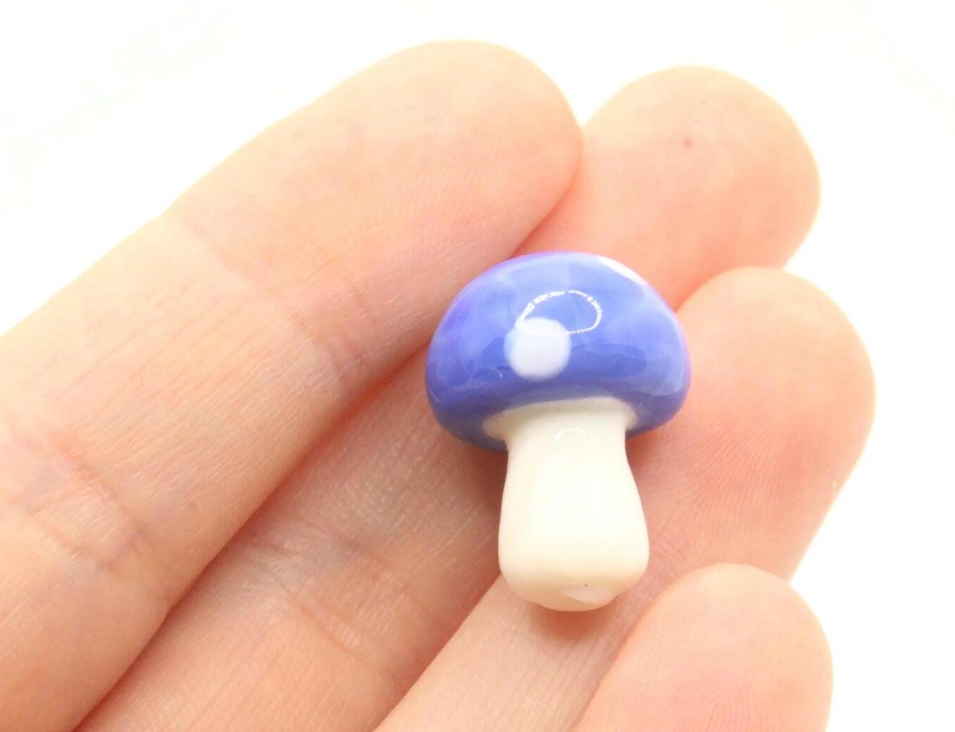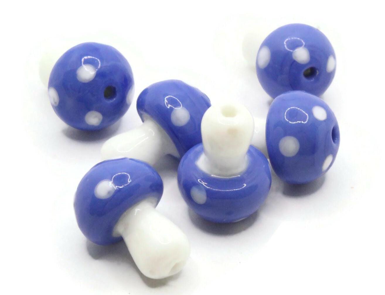 6 19mm Opaque Blue and White Mushroom Polka Dot Lampwork Glass Beads