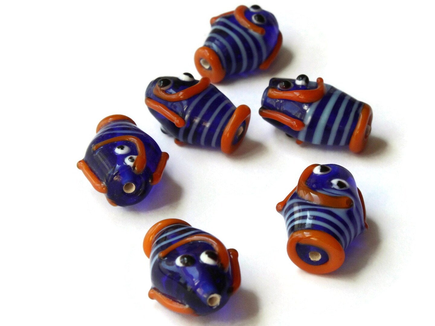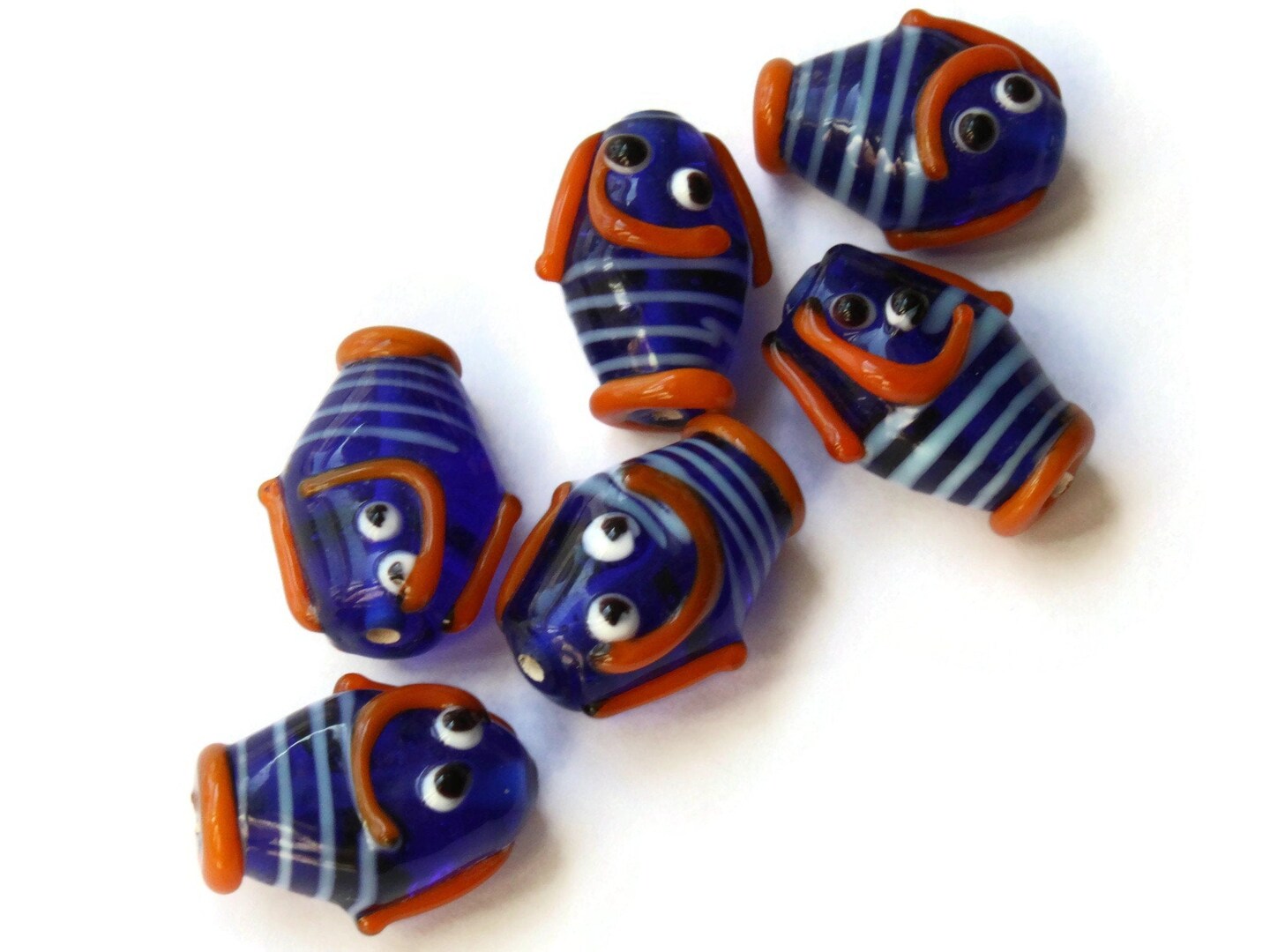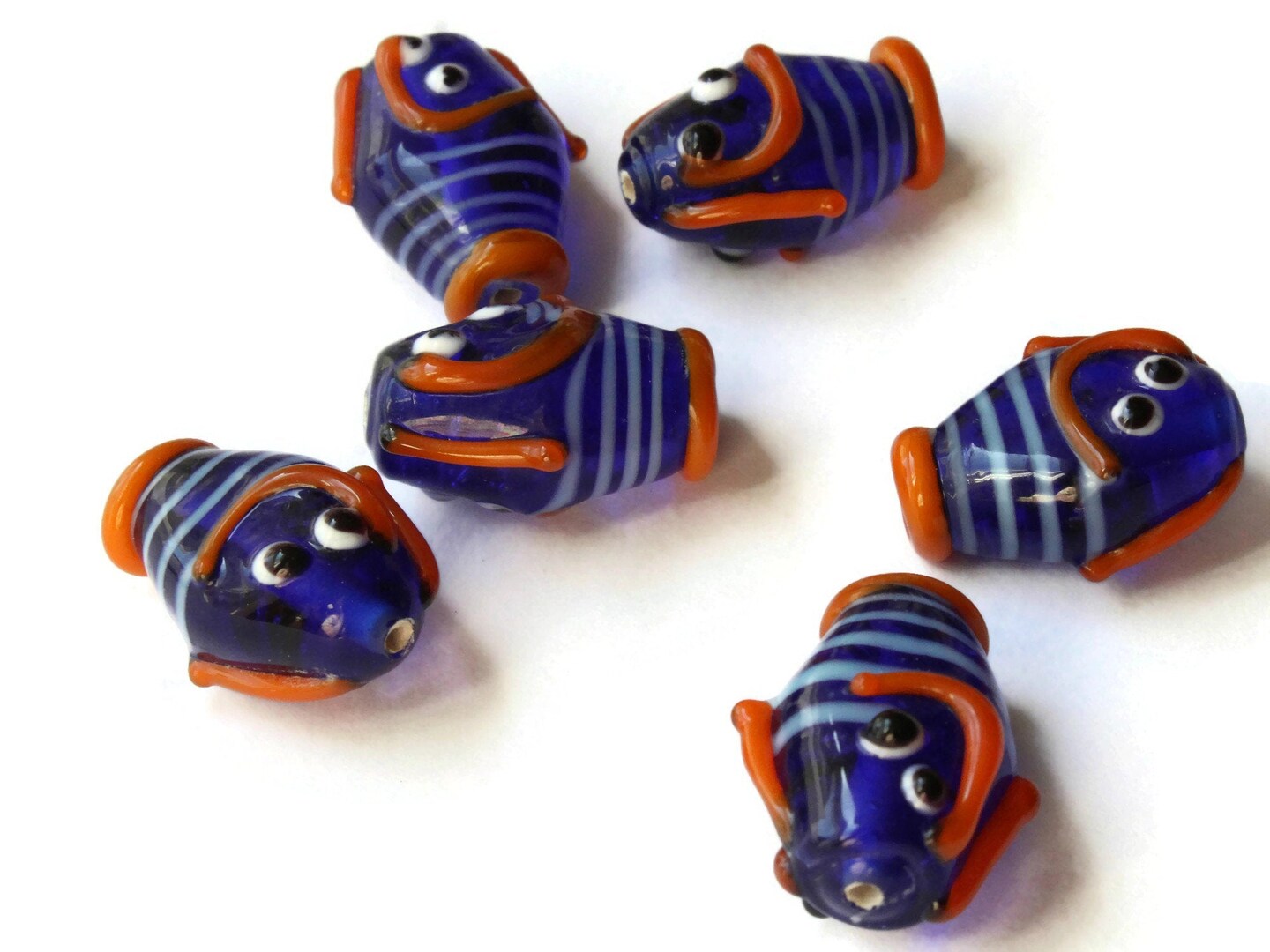 6 21mm Blue Striped Lampwork Glass Fish Beads