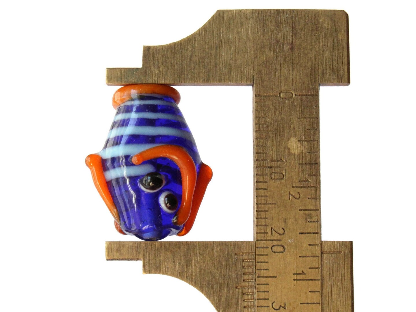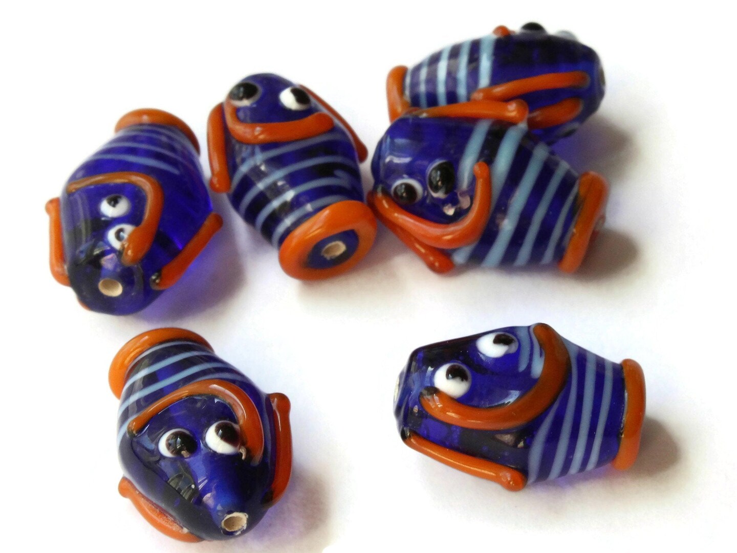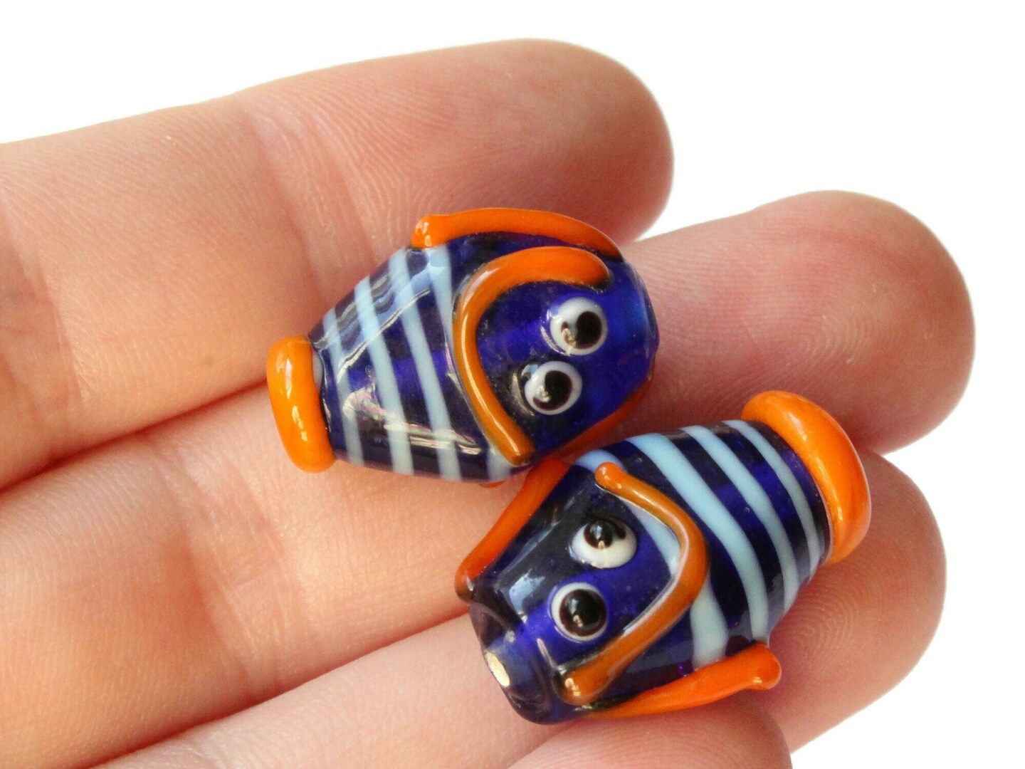 6 21mm Blue Striped Lampwork Glass Fish Beads