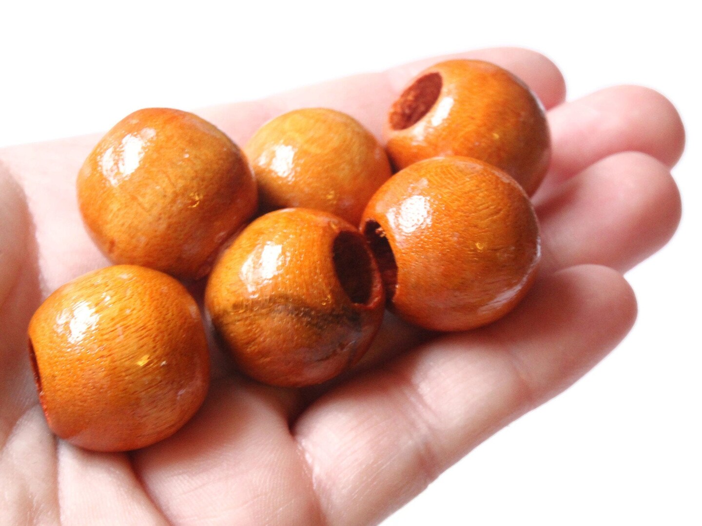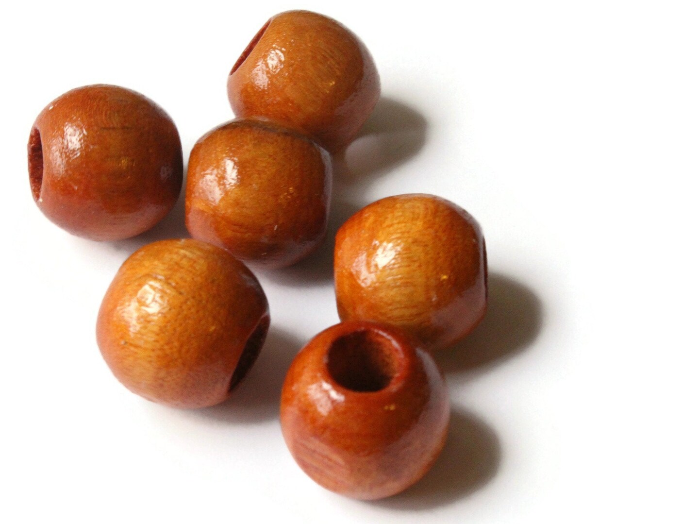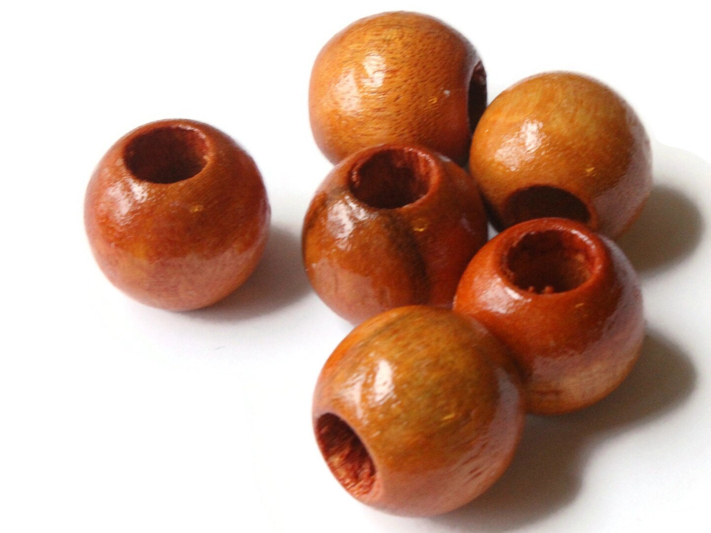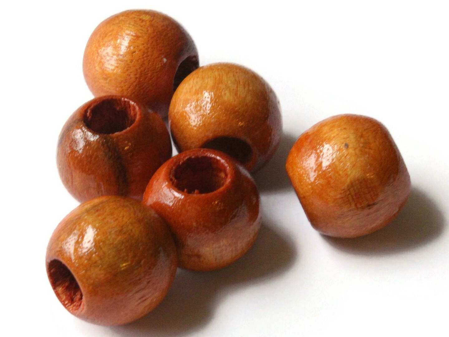 6 21mm x 19mm Medium Brown Round Wood Macrame Beads