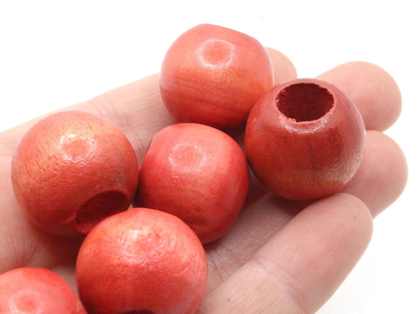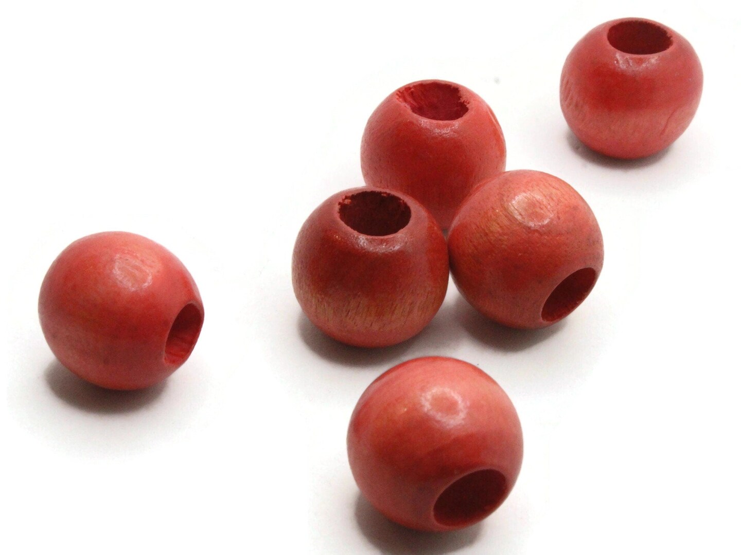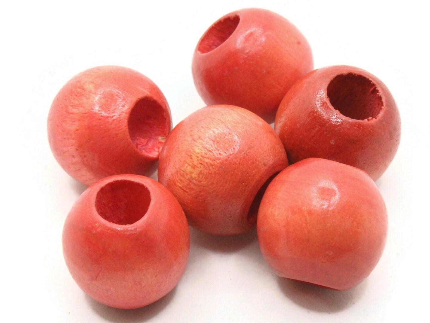6 21mm x 19mm Red Orange Round Vintage Wood Large Hole Loose Beads