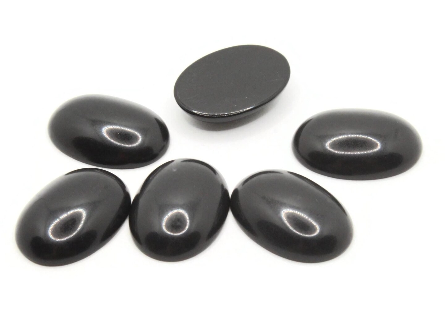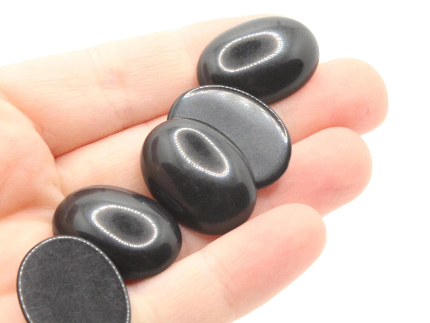6 24mm Black Oval Vintage Lucite Plastic Flatback Cabochons