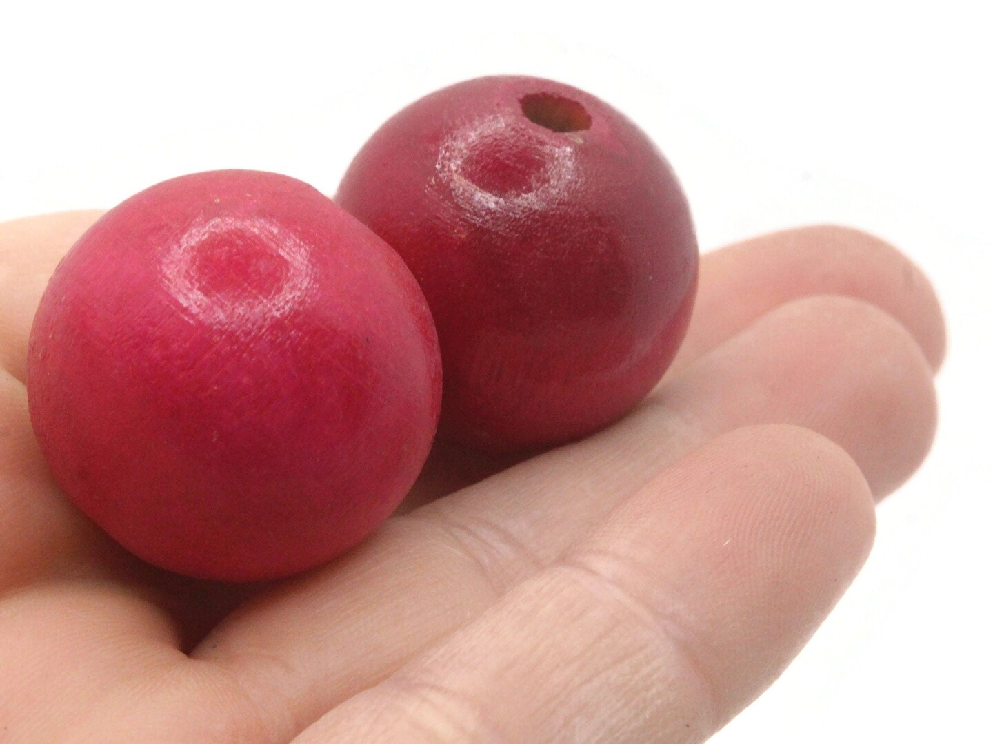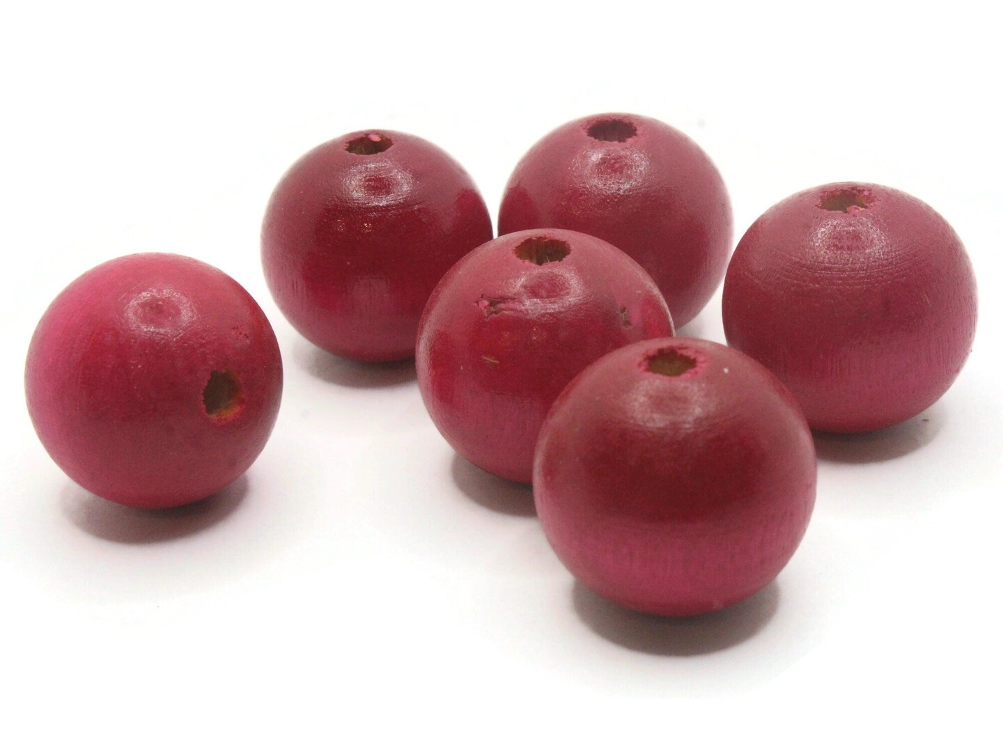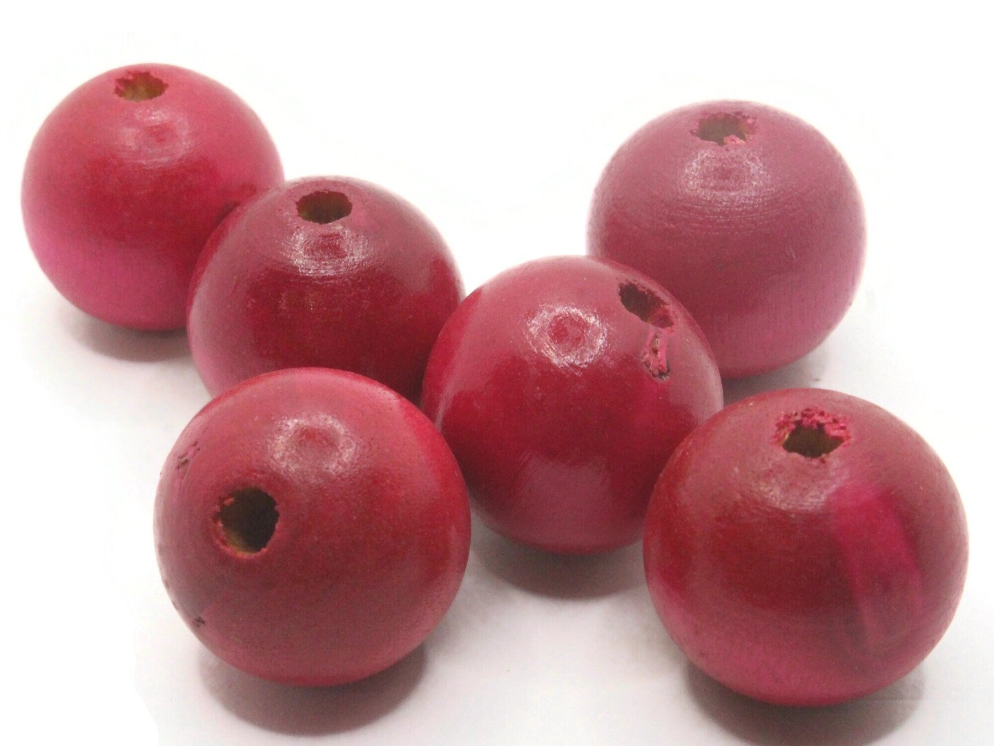 6 24mm Round Red Wood Large Hole Macrame Beads bW1