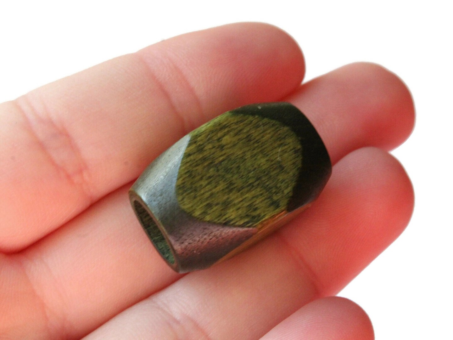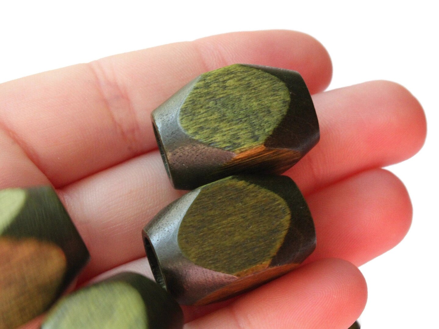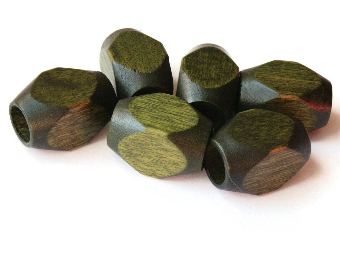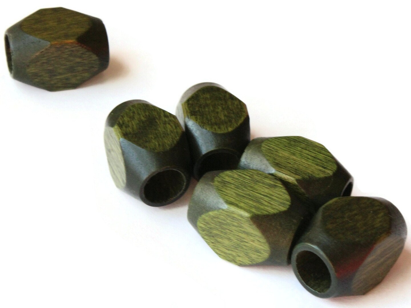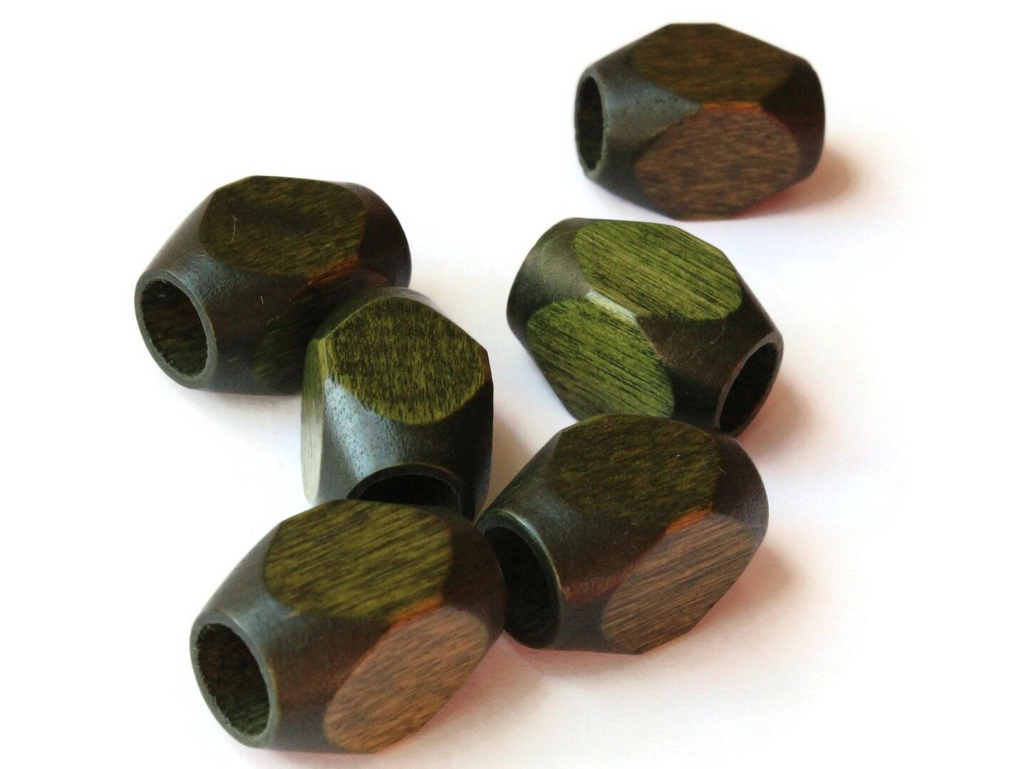 6 25mm x 16mm Dark Green Large Hole Wood Rectangle Vintage Macrame Beads