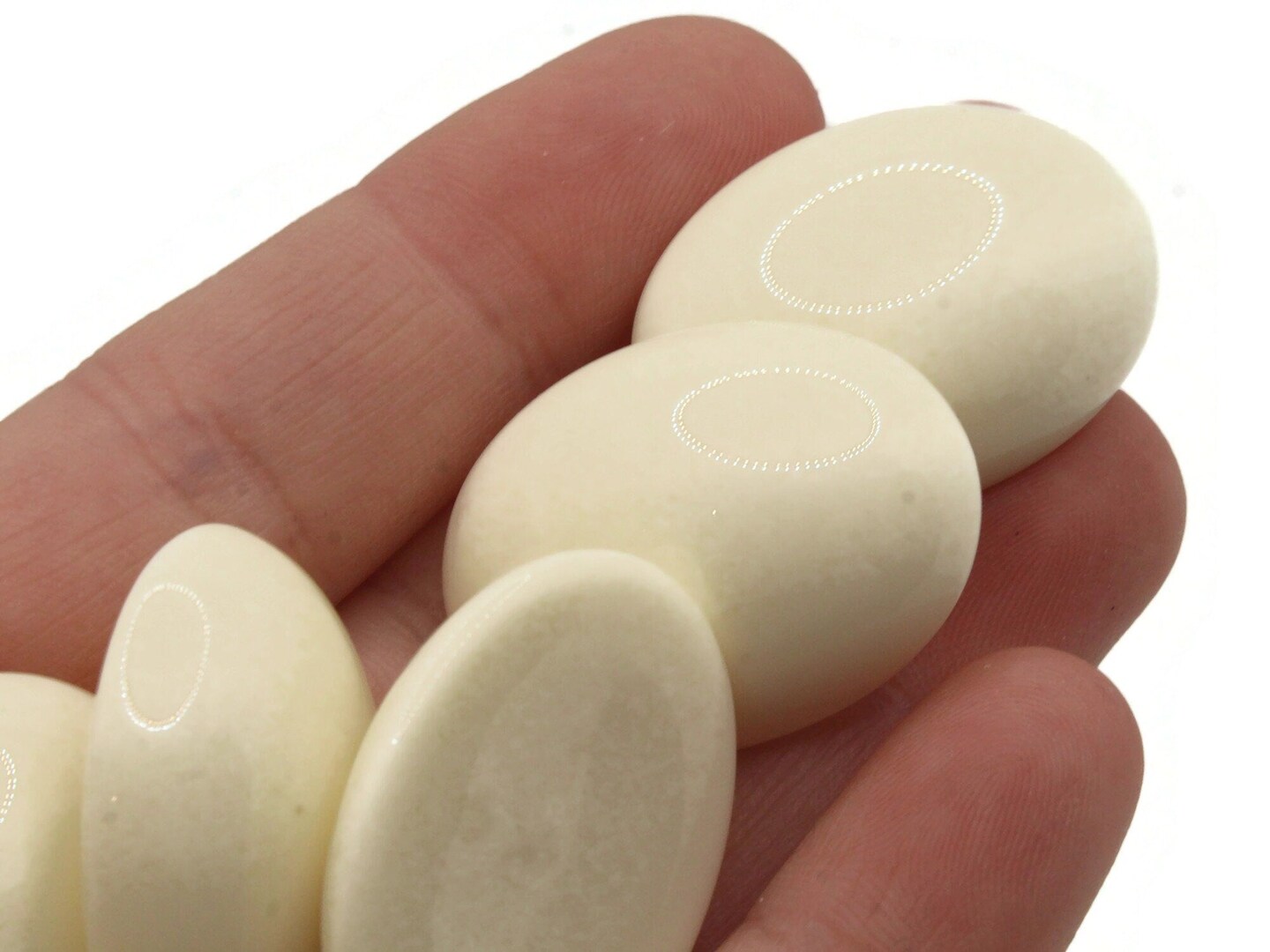 6 29mm Ivory Colored Oval Vintage Lucite Flatback Cabochons