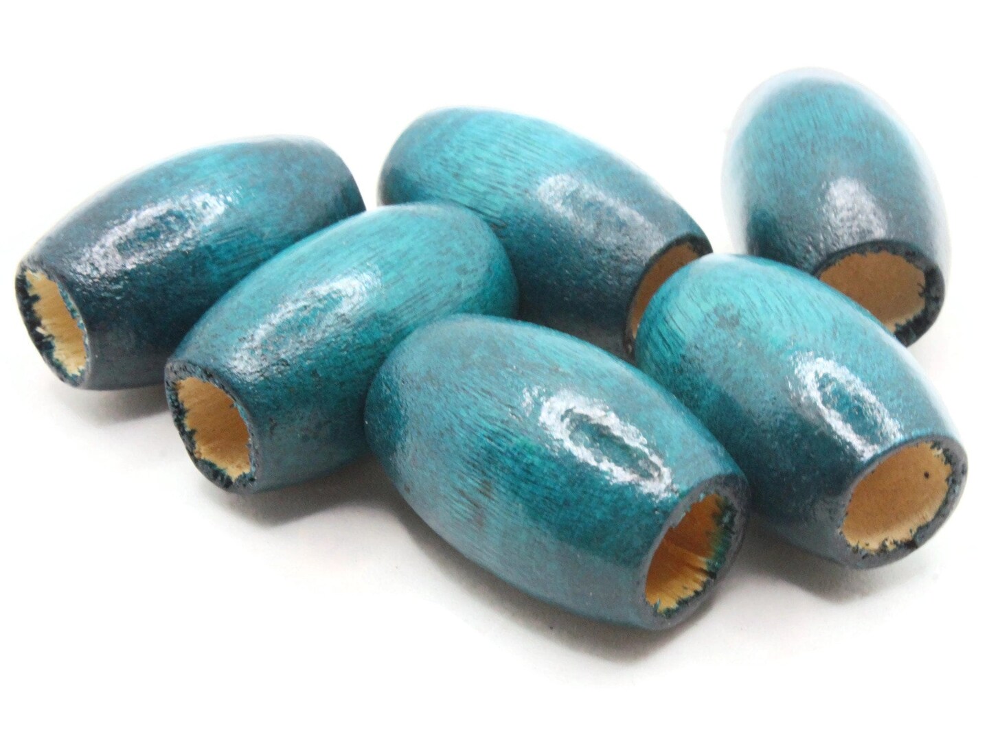 6 30mm Blue Wood Barrel Beads Large Hole Macrame Beads bH3