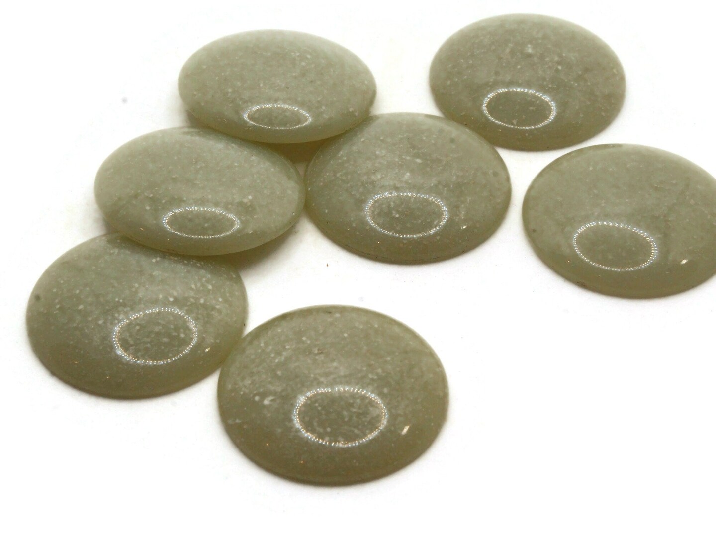 6 30mm Muted Green with White Speckles Vintage Lucite Cabochons