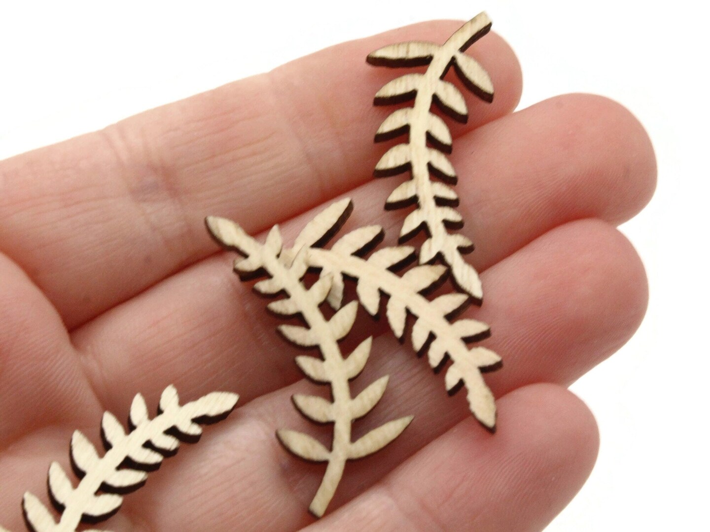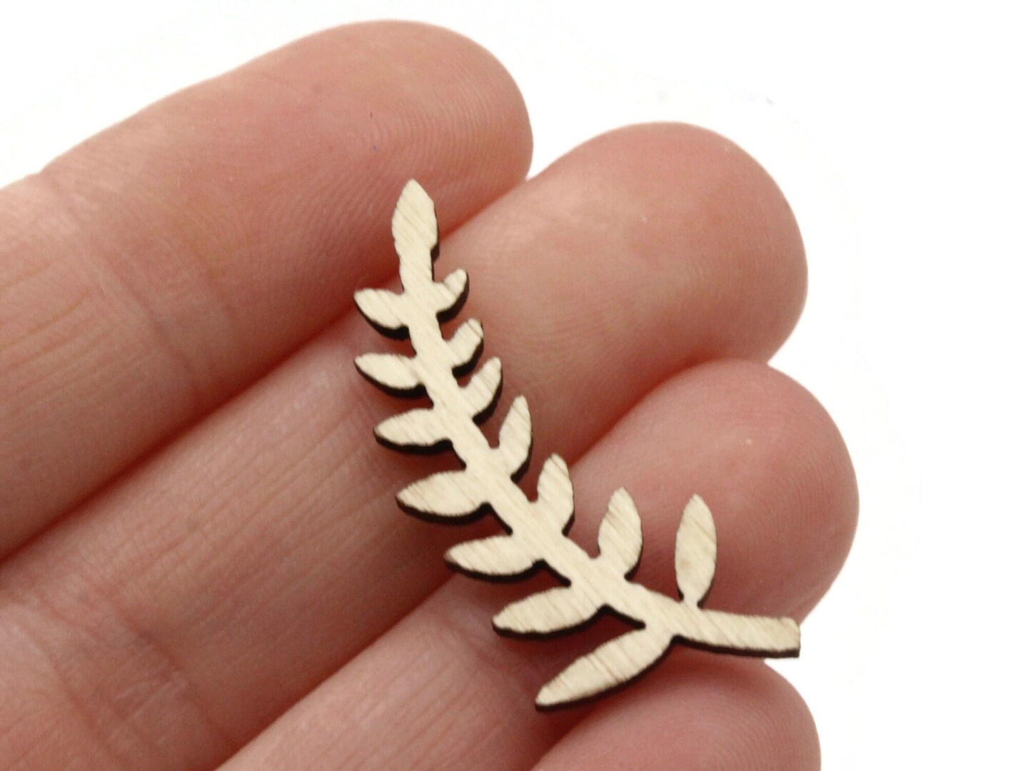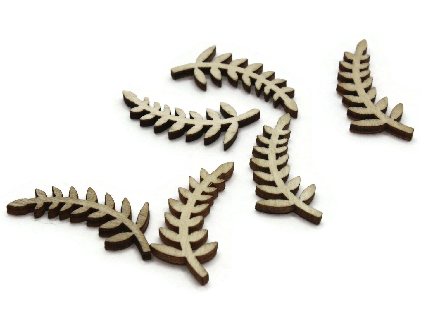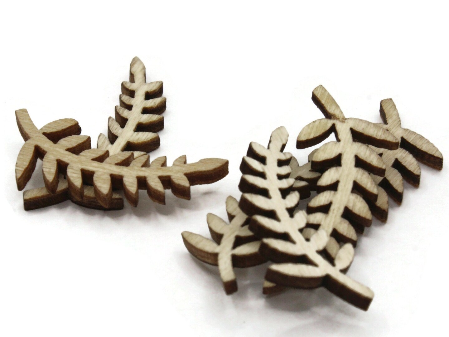 6 31mm Brown Natural Wood Fern Leaf Cabochons