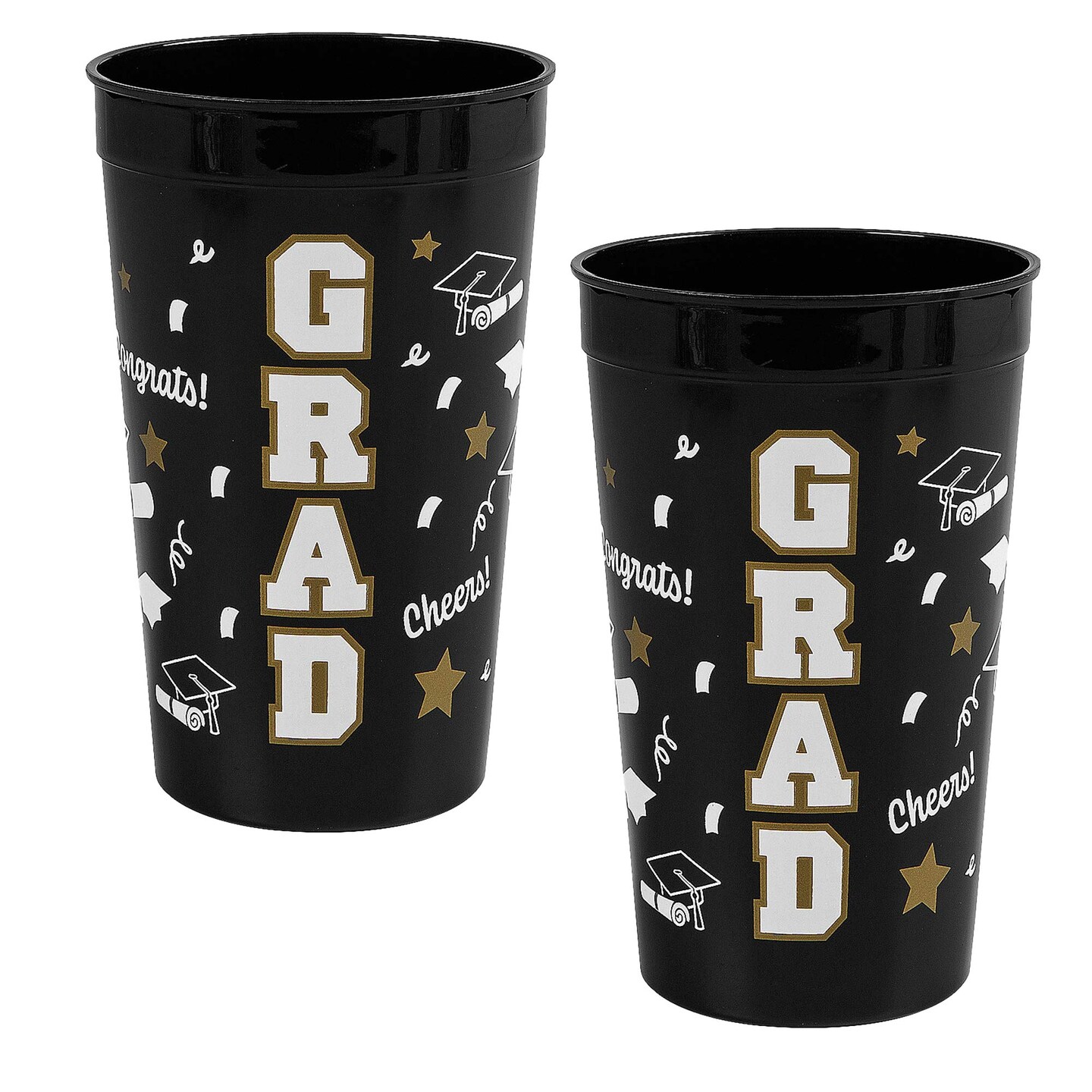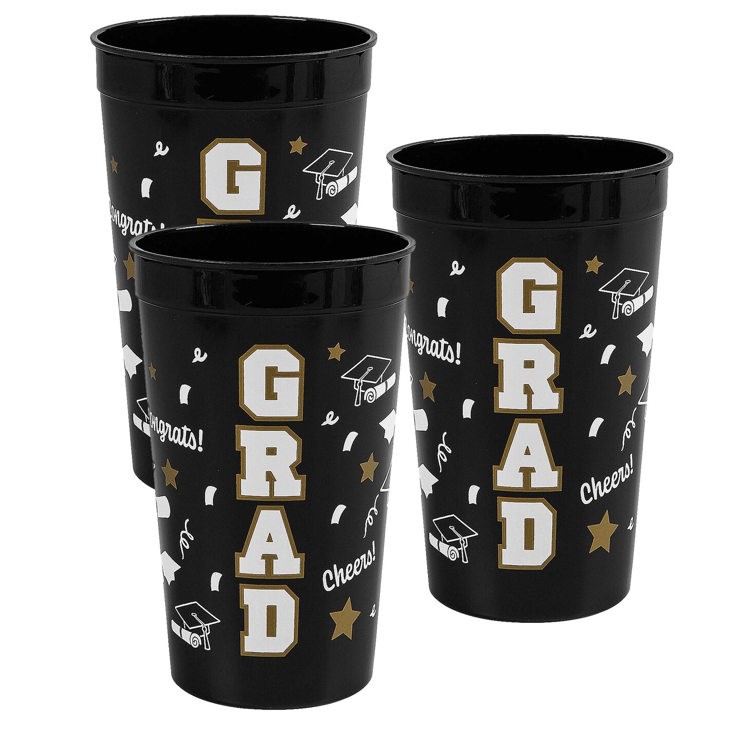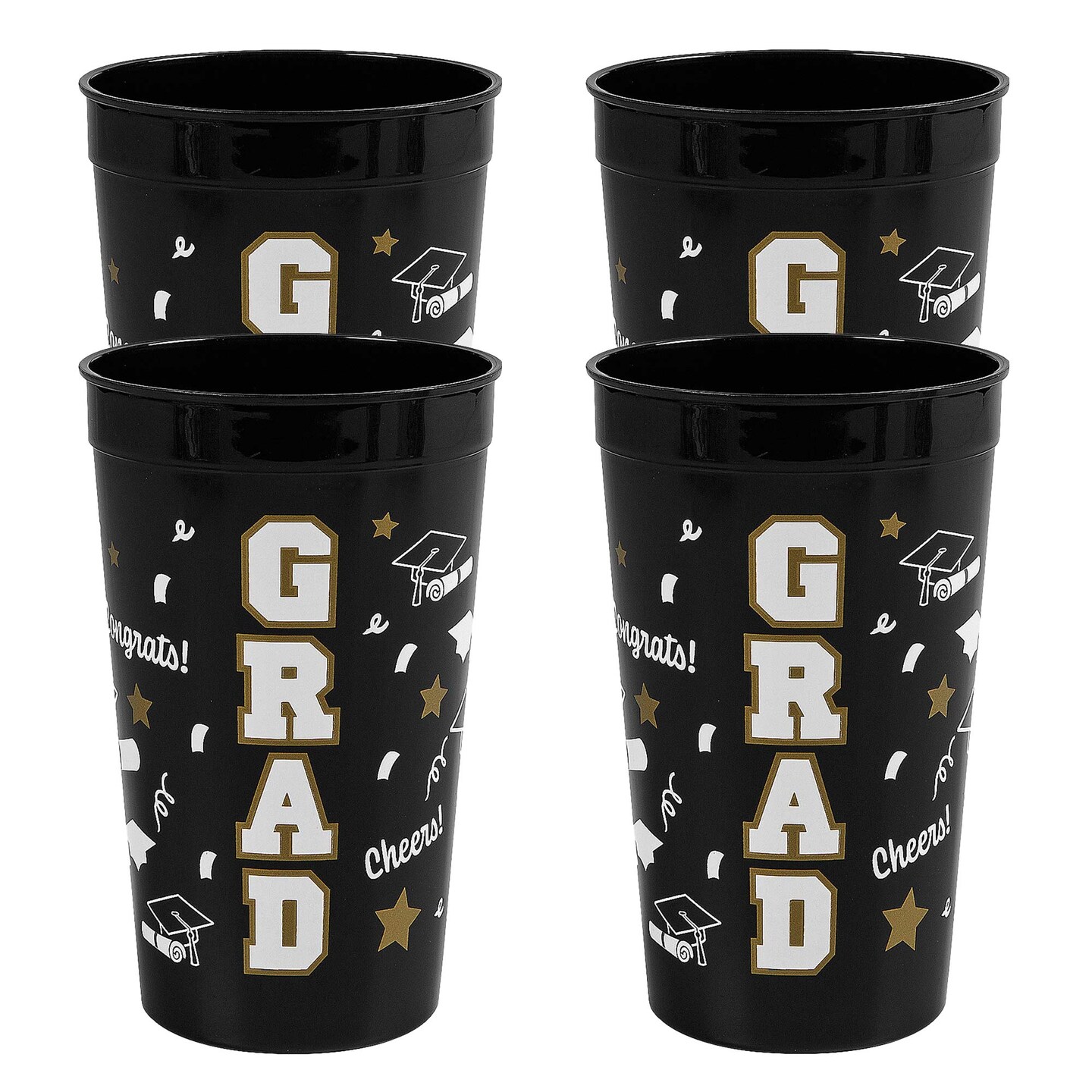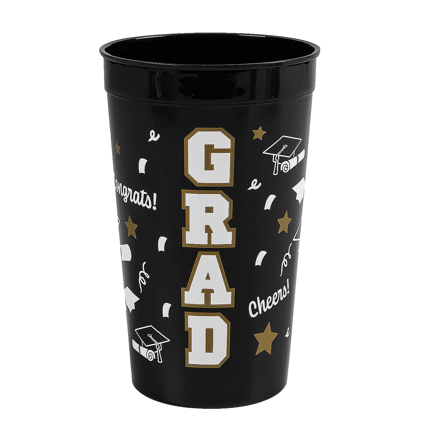 6 3/4" 32 oz. Bright Black Grad Reusable Plastic Tumblers 12 Count