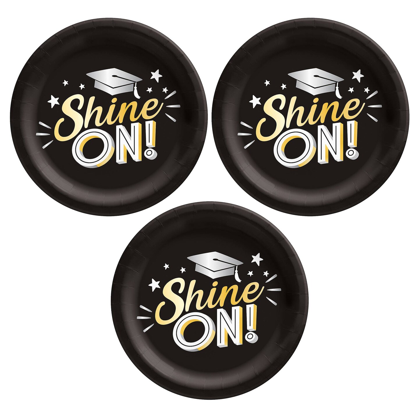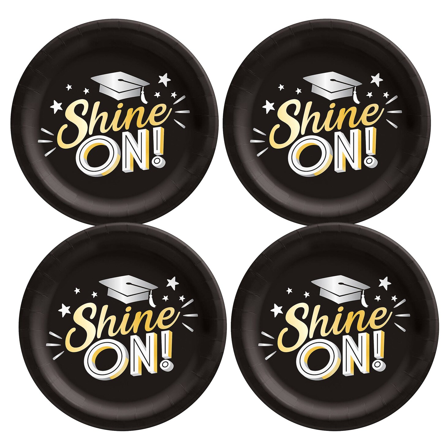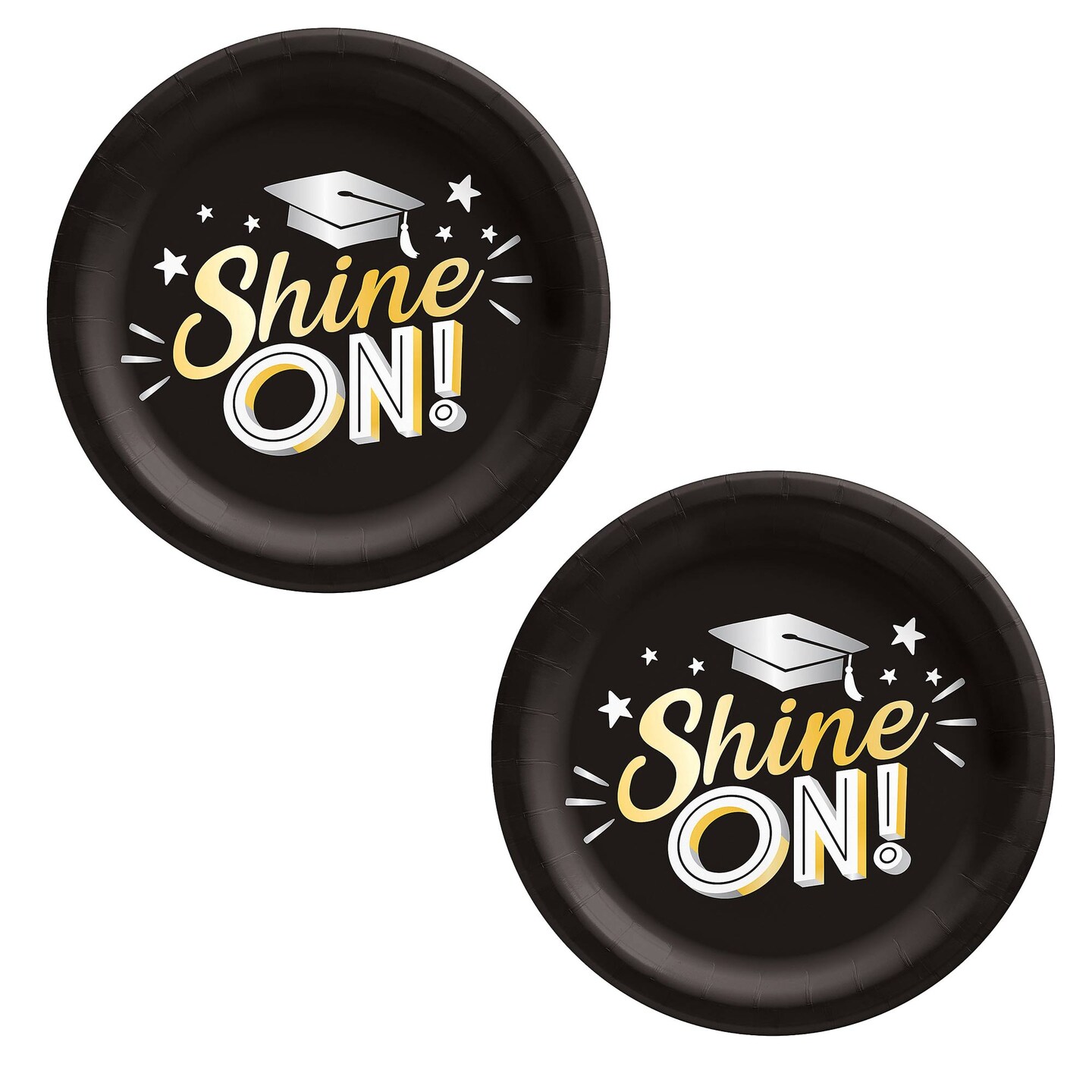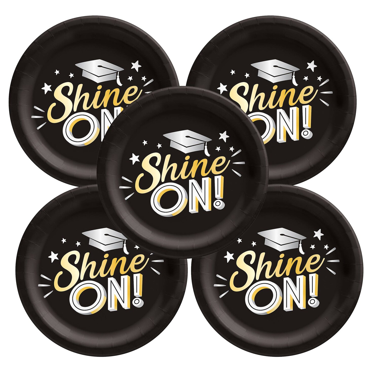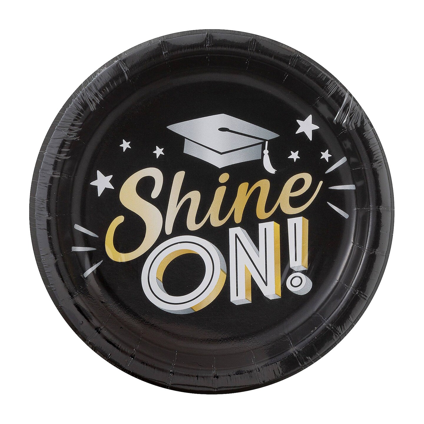 6 3/4" Black Grad Party "Shine On" Dessert Plates Set of 8
