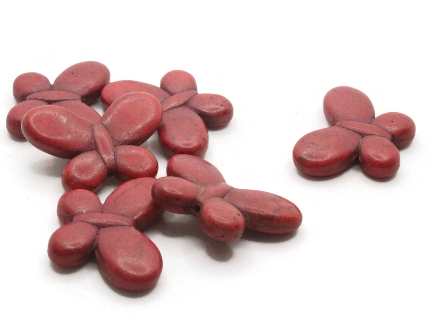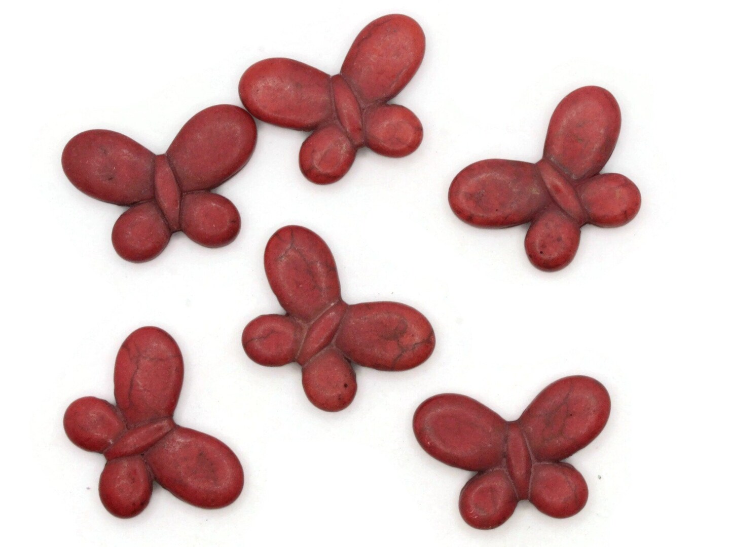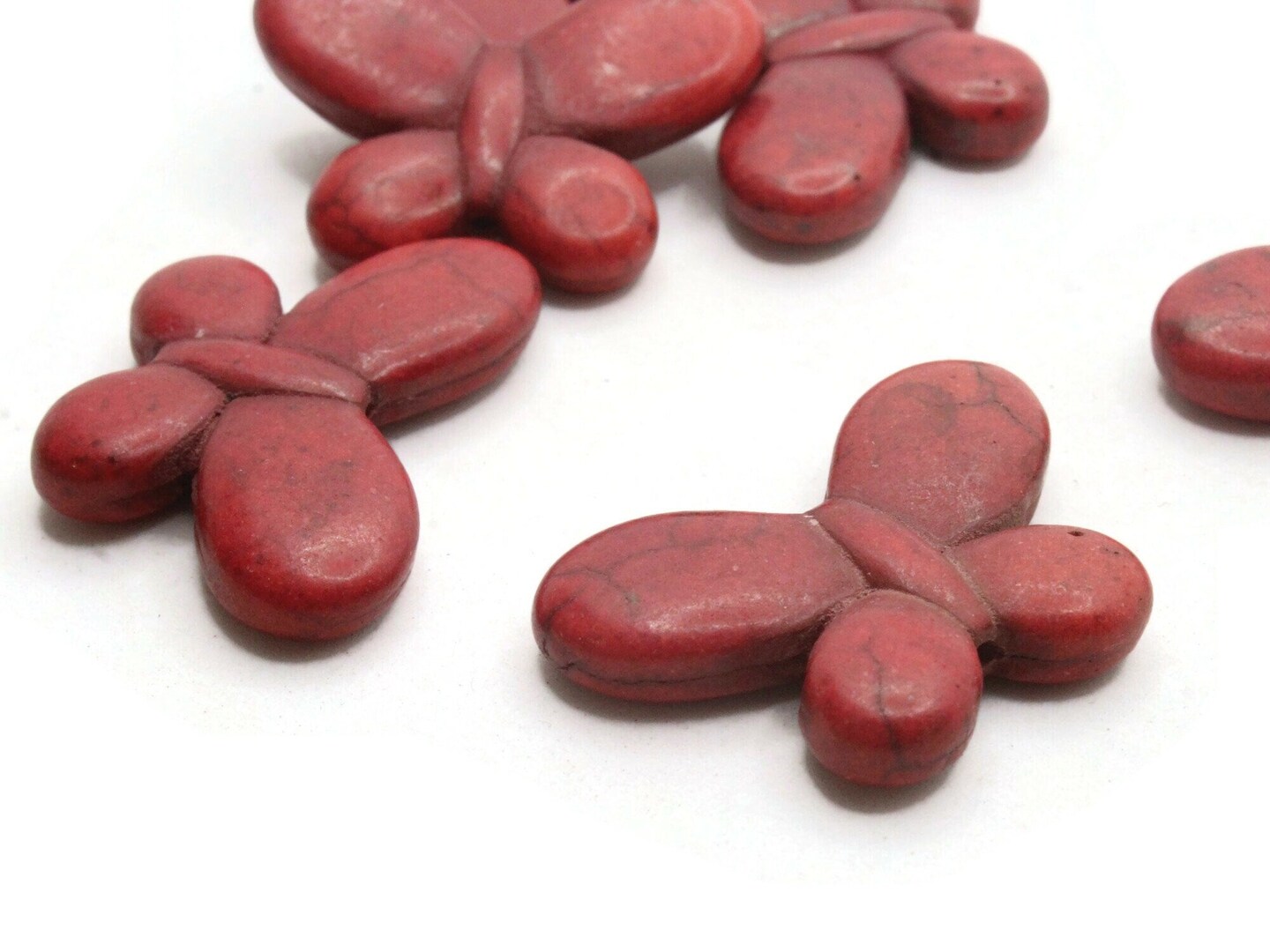 6 35mm Butterfly Dyed Red Synthetic Turquoise Stone Beads