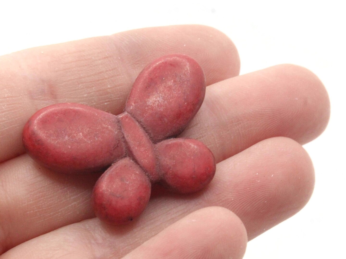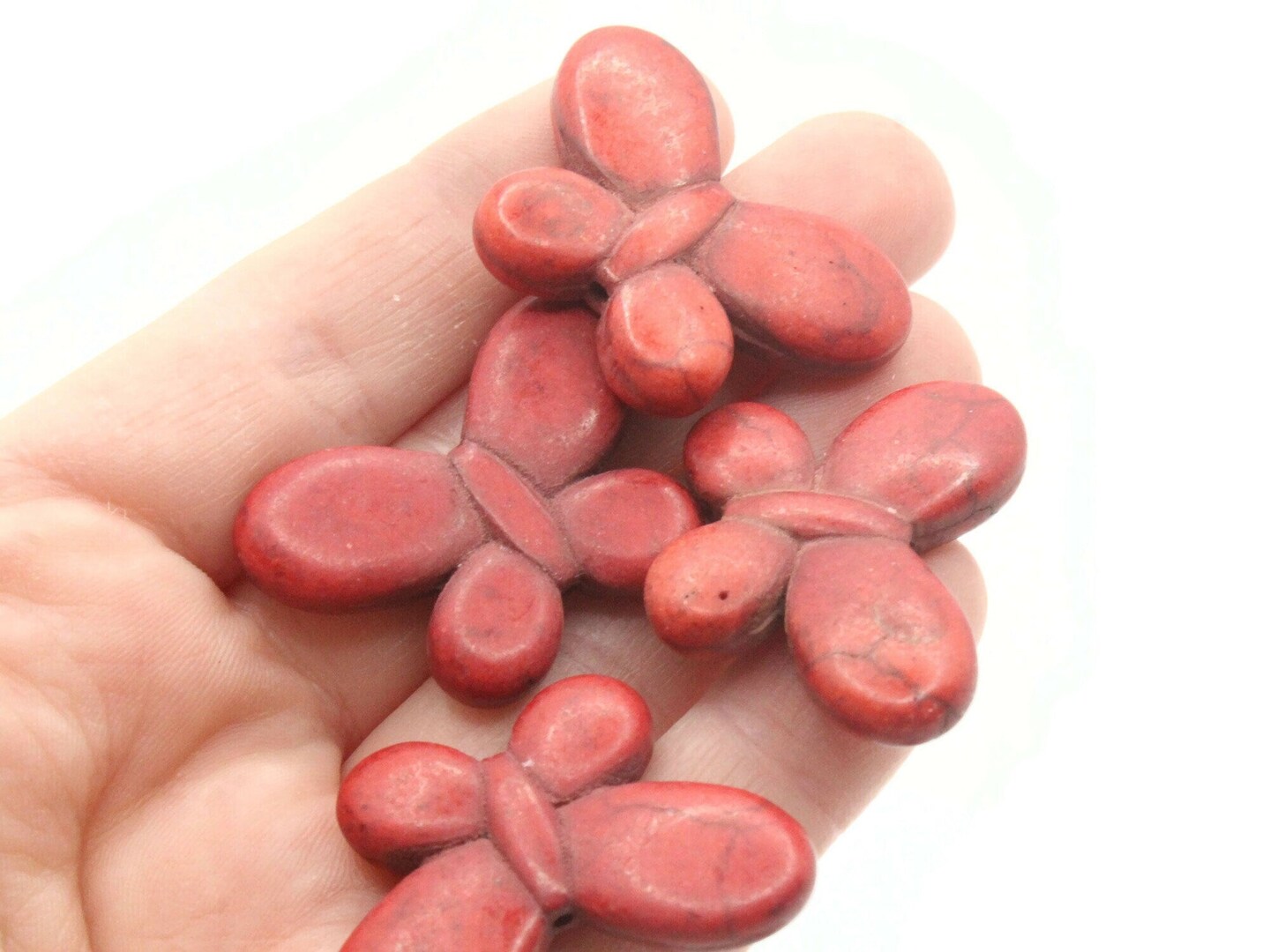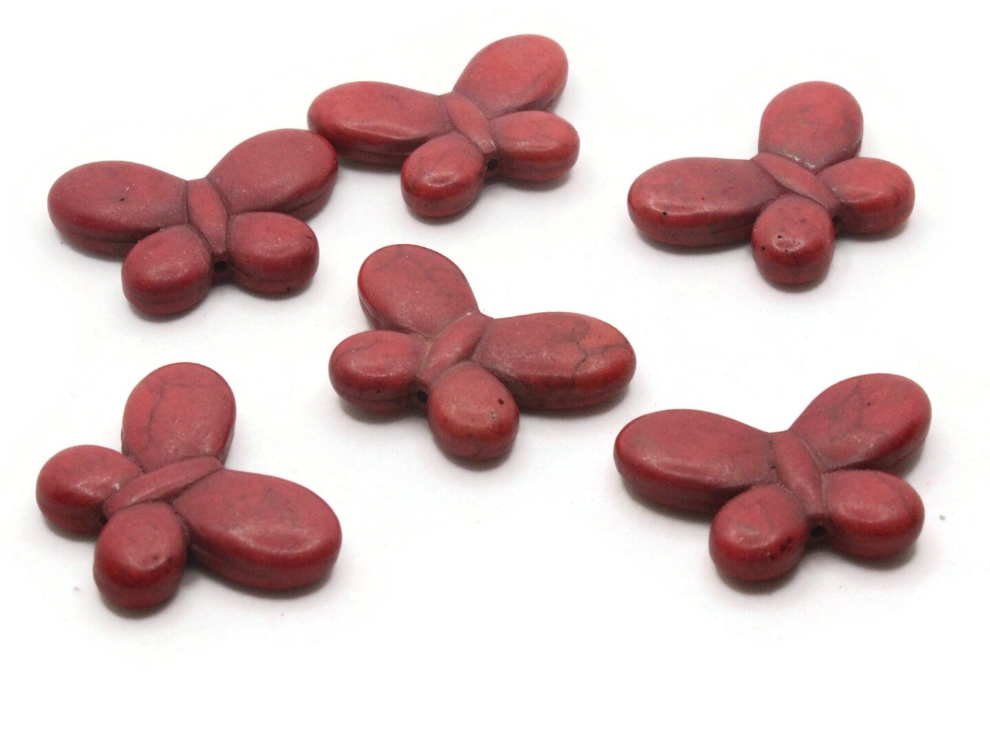 6 35mm Butterfly Dyed Red Synthetic Turquoise Stone Beads
