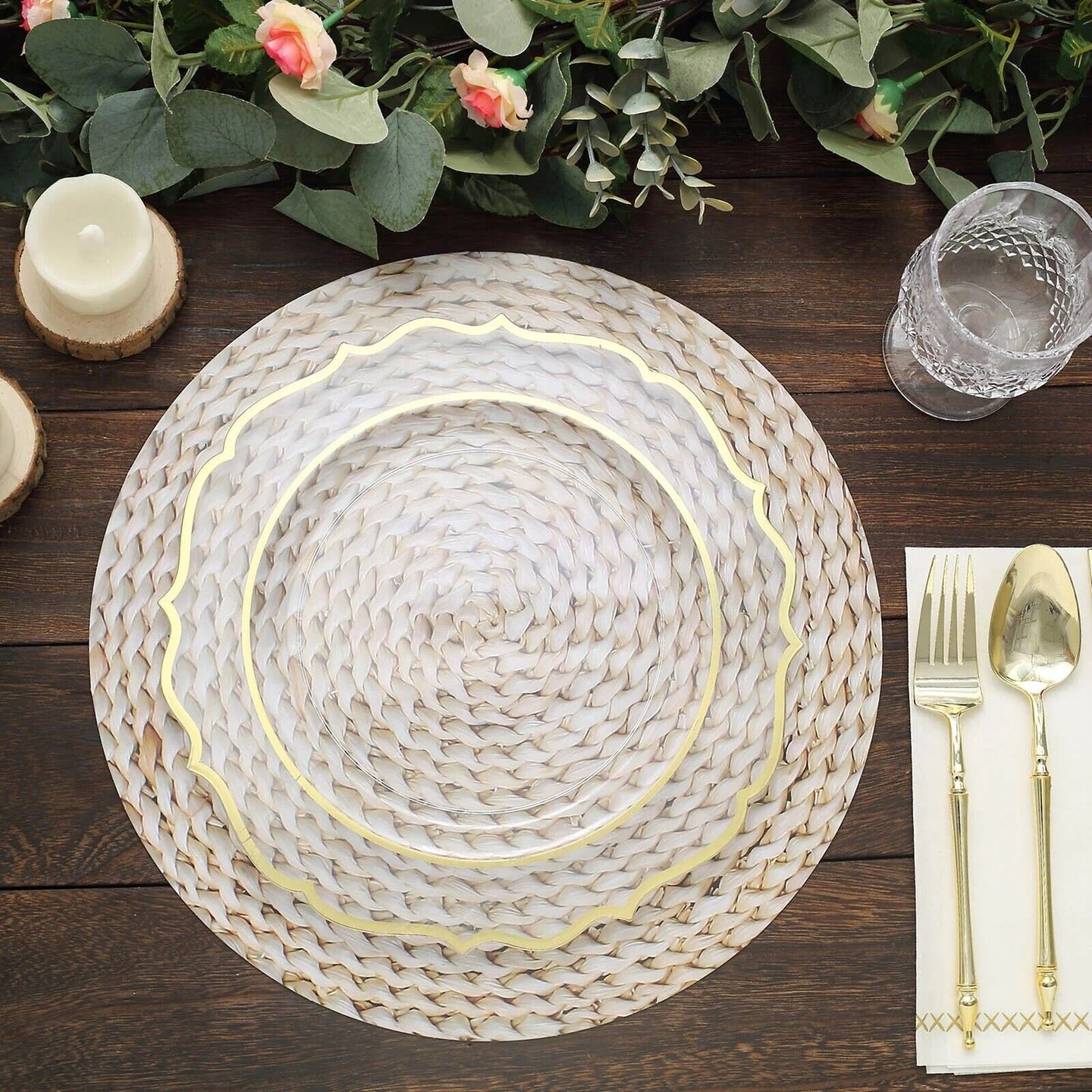 6 Beige 13 in Woven Rattan Design Disposable Paper PLATES