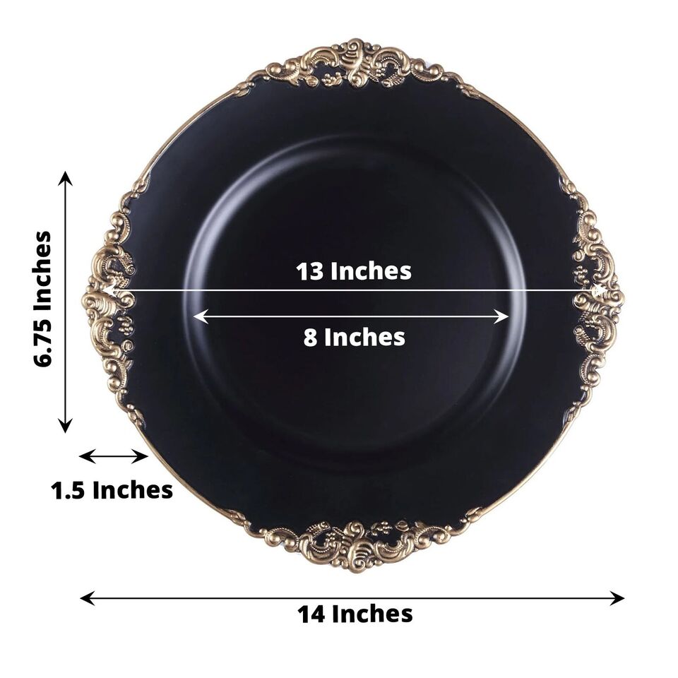 6 BLACK GOLD 13" Round with Embossed Rim Charger Plates