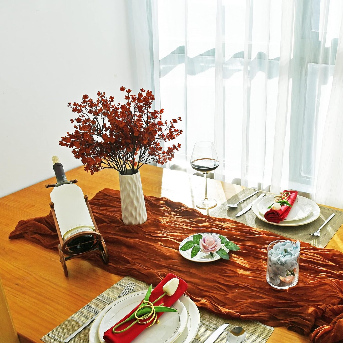 6 Bundles Burnt Orange Artificial Baby’s Breath Flowers – 18.5-Inch Silk Gypsophila for Wedding Bouquets, Table Centerpieces, Home Décor, and Modern European Floral Arrangements
