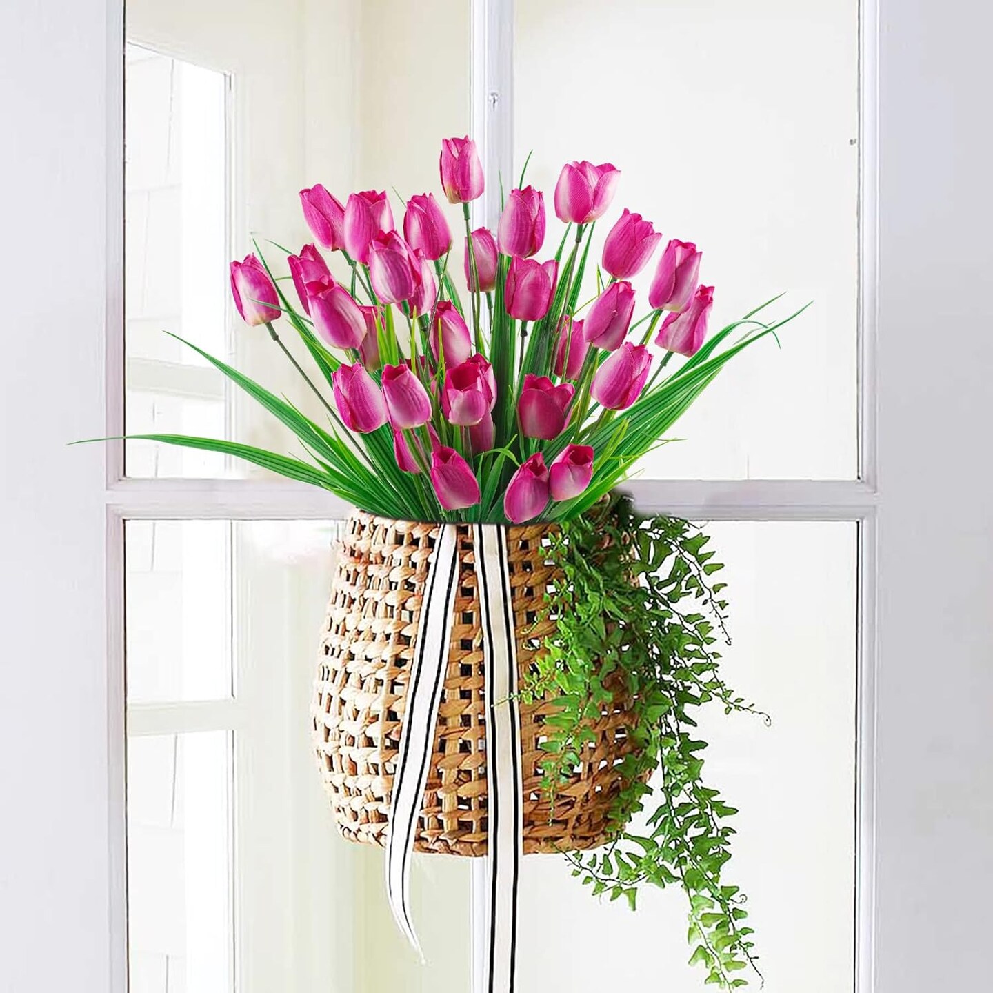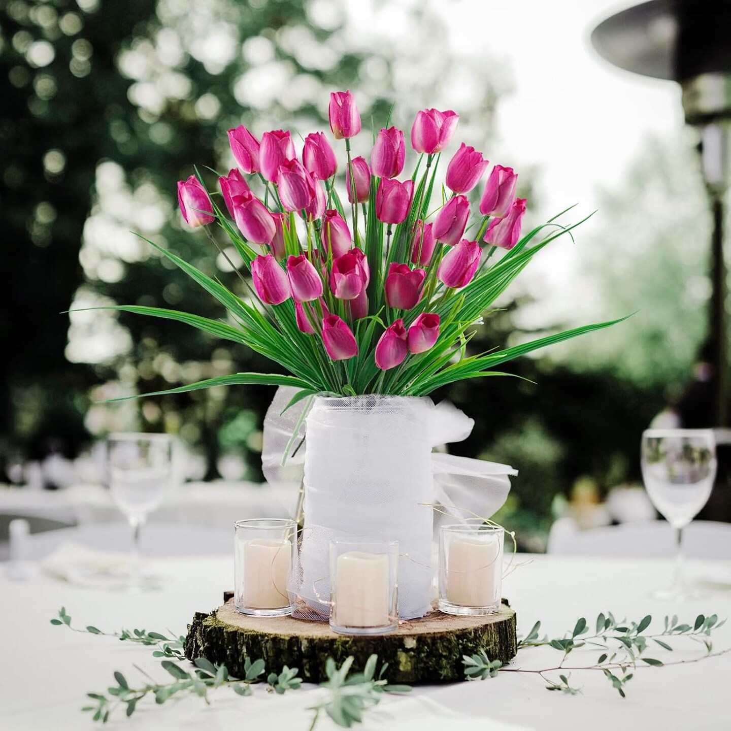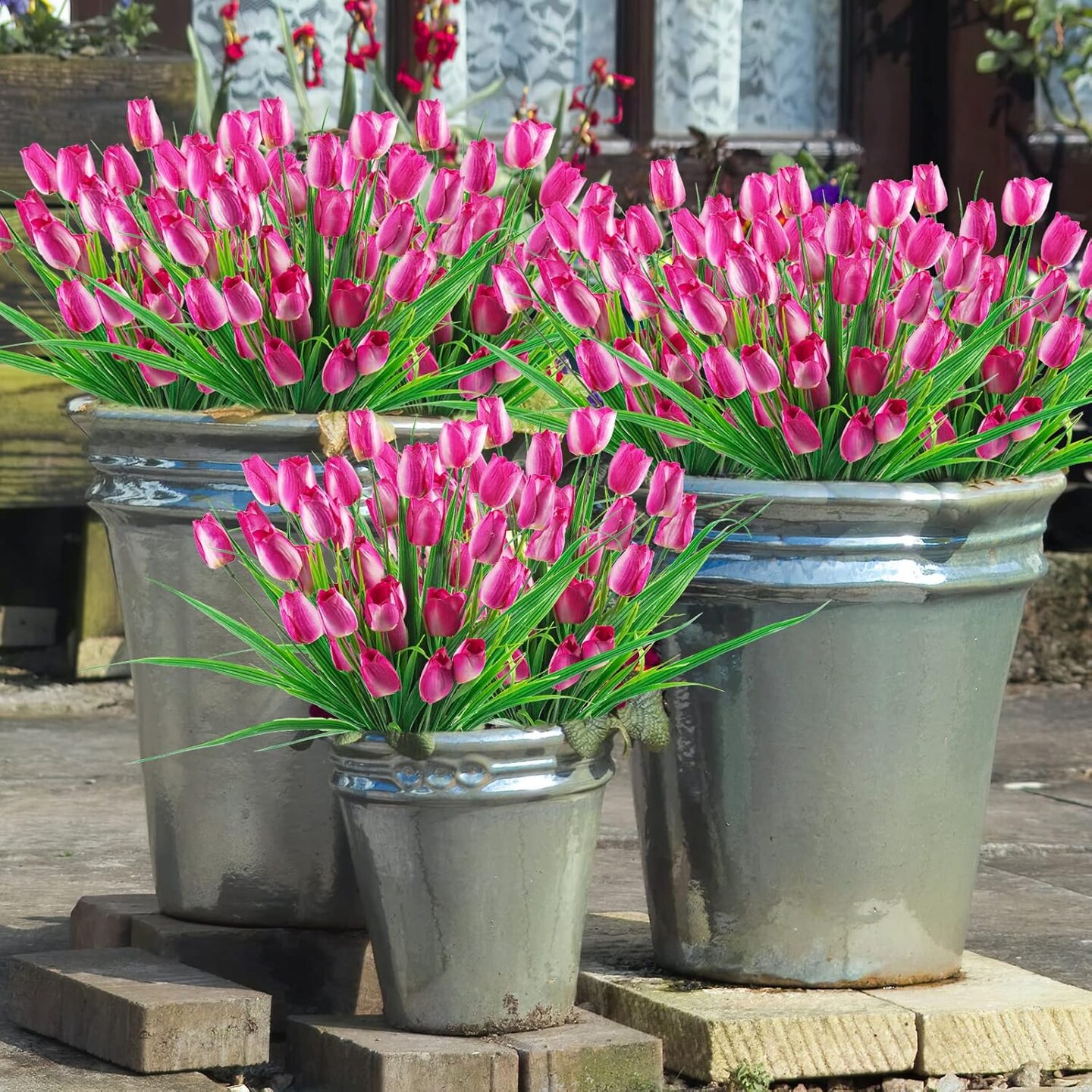 6 Bundles Tulips Artificial Flowers,30 Heads Outdoor Artificial Tulip Faux Plastic