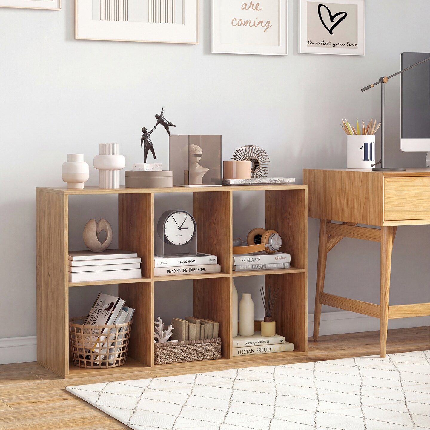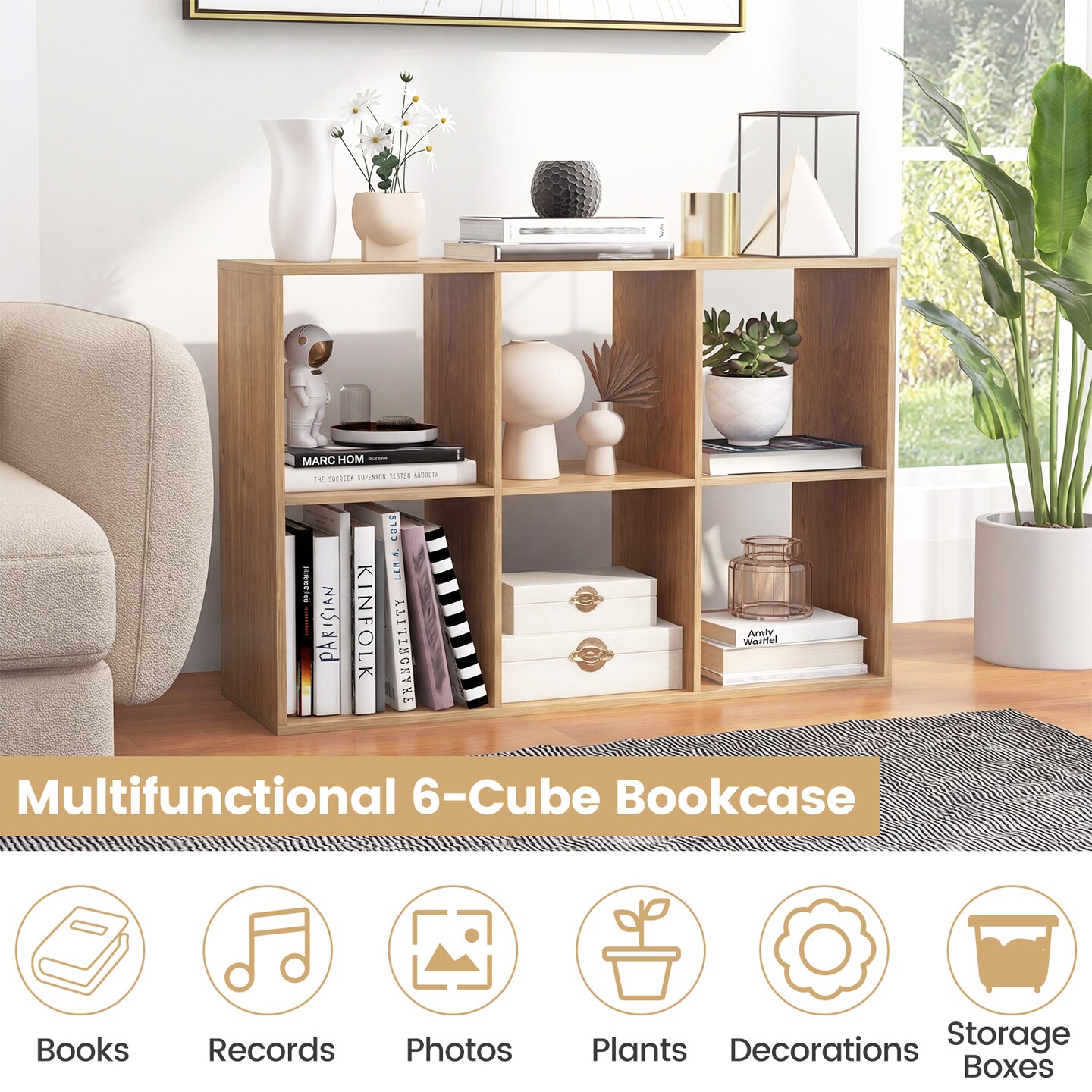 6 Cube Storage Shelf with Back Panel Home Organizer Bookcase