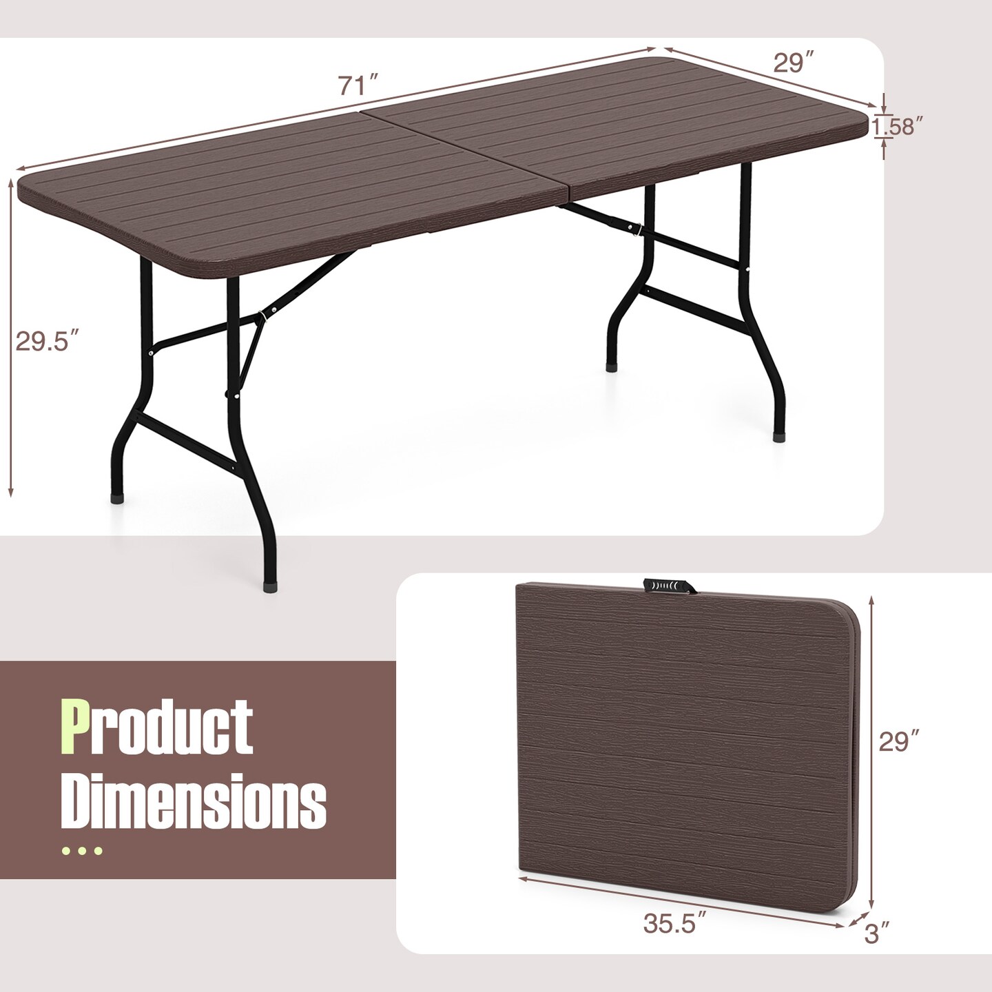 6 Feet Wood Grain HDPE Folding Table with Safety Lock and Metal Legs Perfect for Outdoor Use