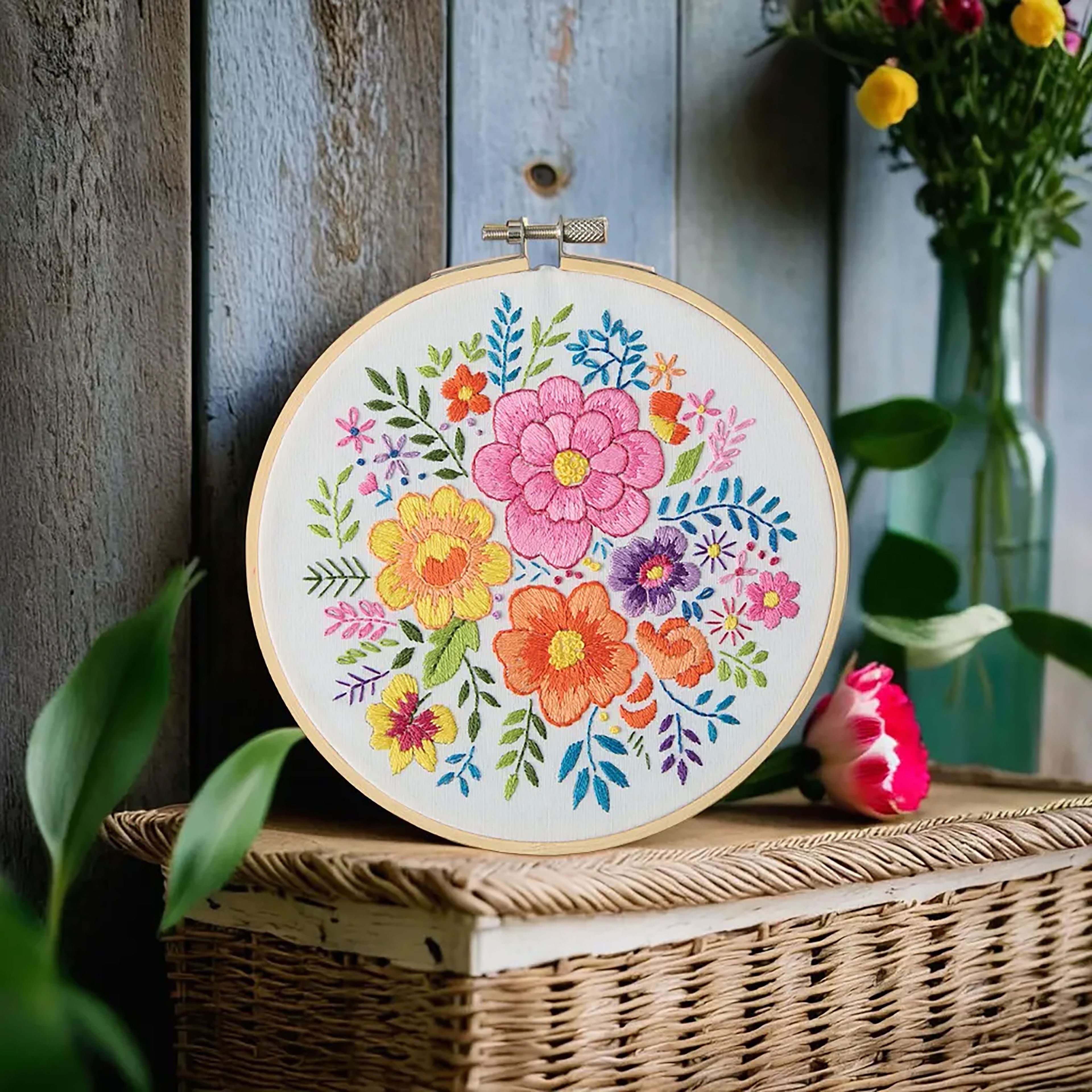 6" Floral Stamped Design Embroidery Kit with Hoop by Loops & Threads®