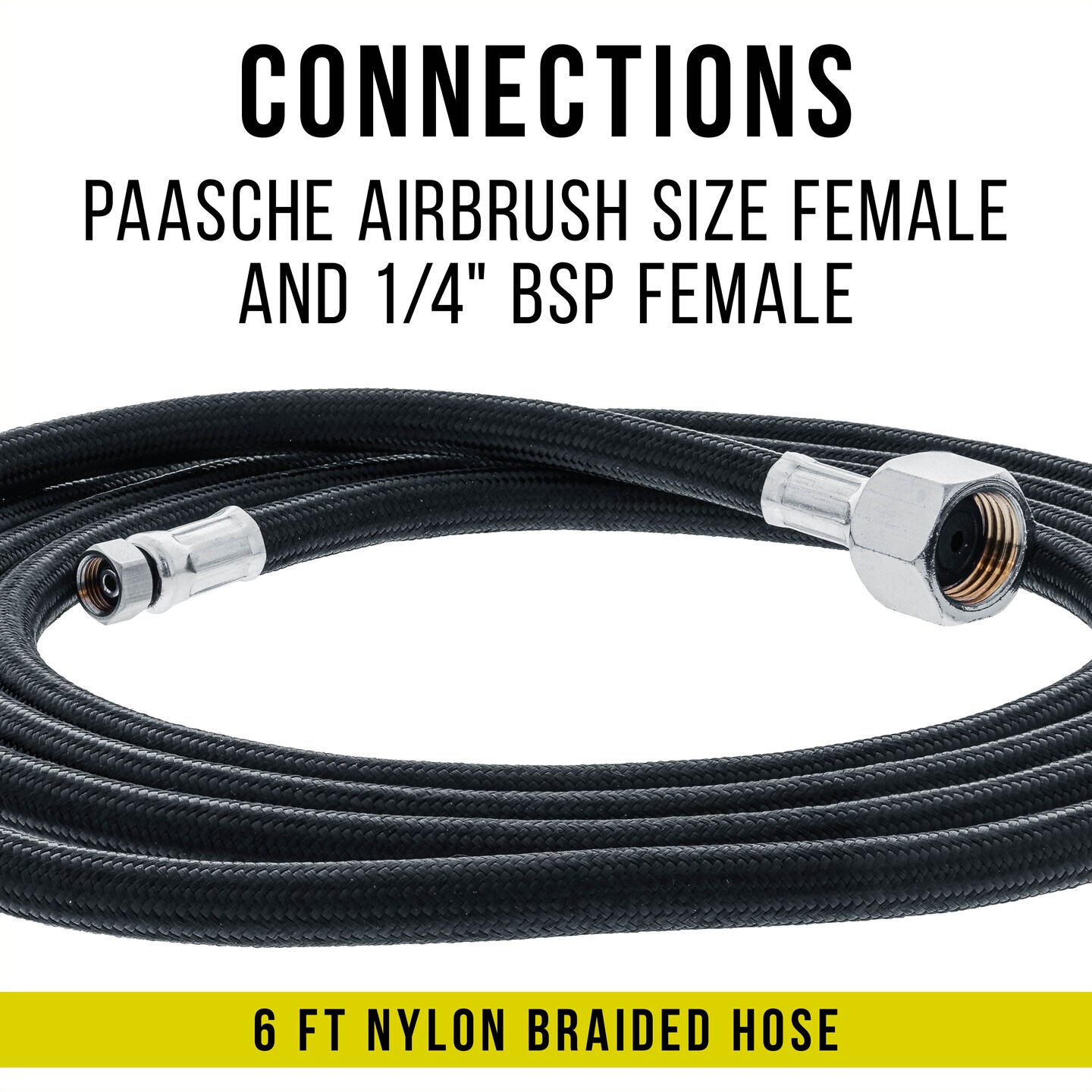 6 Foot Braided Airbrush Hose - Paasche 1/4” NPT & 1/4" BSP Air Brush Hose Adapter Fitting Connectors for Regulator Compressor