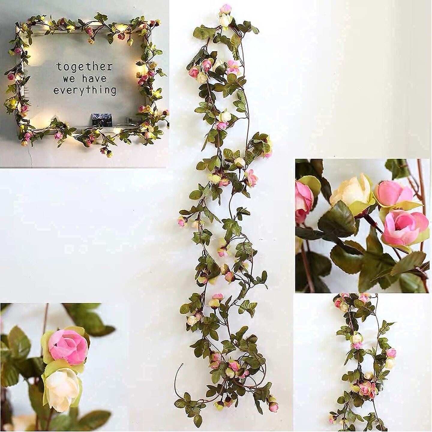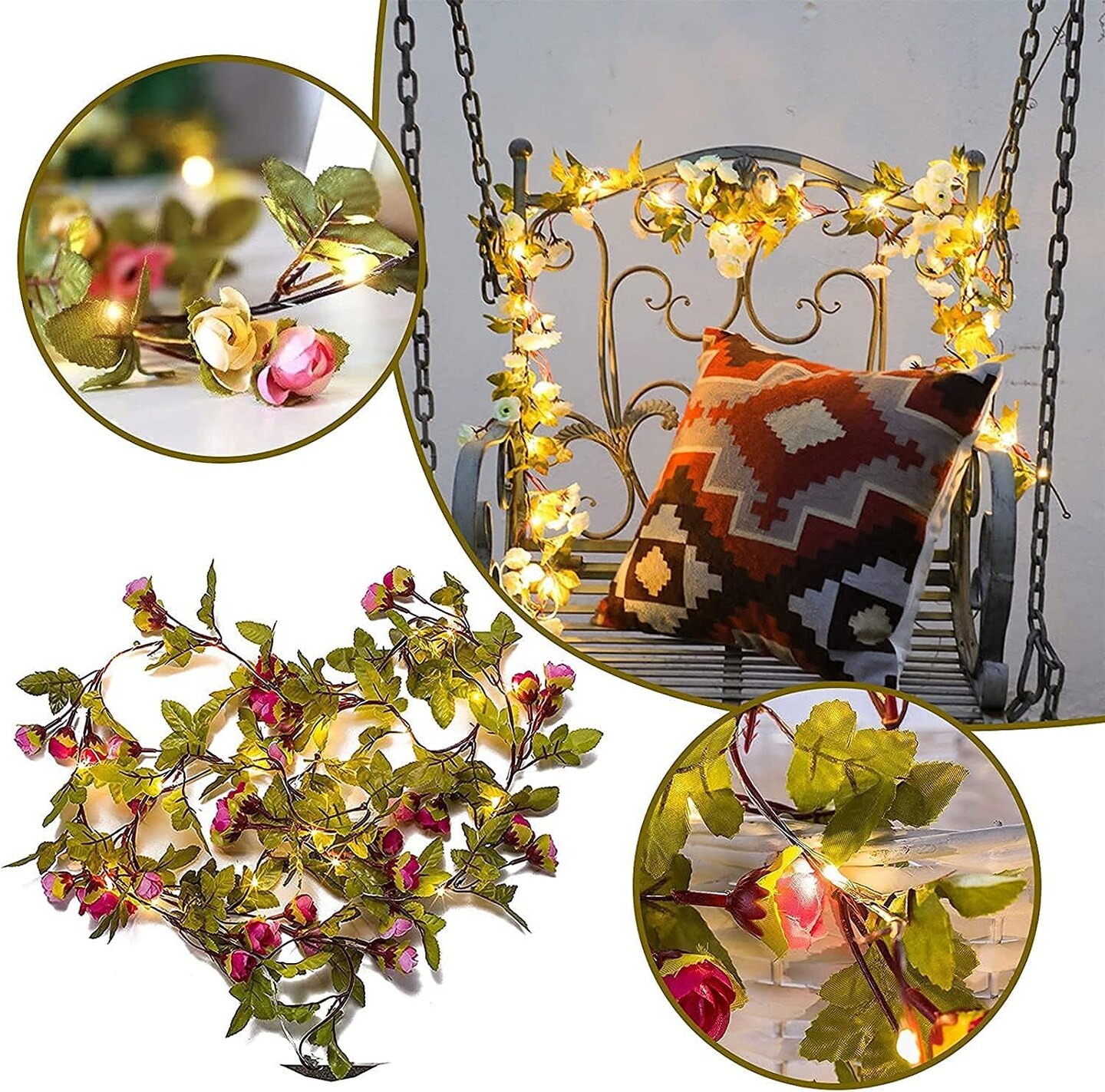 6 ft (2 m) Artificial Rose Flower Vine String Lights – 20 LED Battery-Operated Ivy Garland for Wedding, Birthday, Garden, Party & Gift Décor