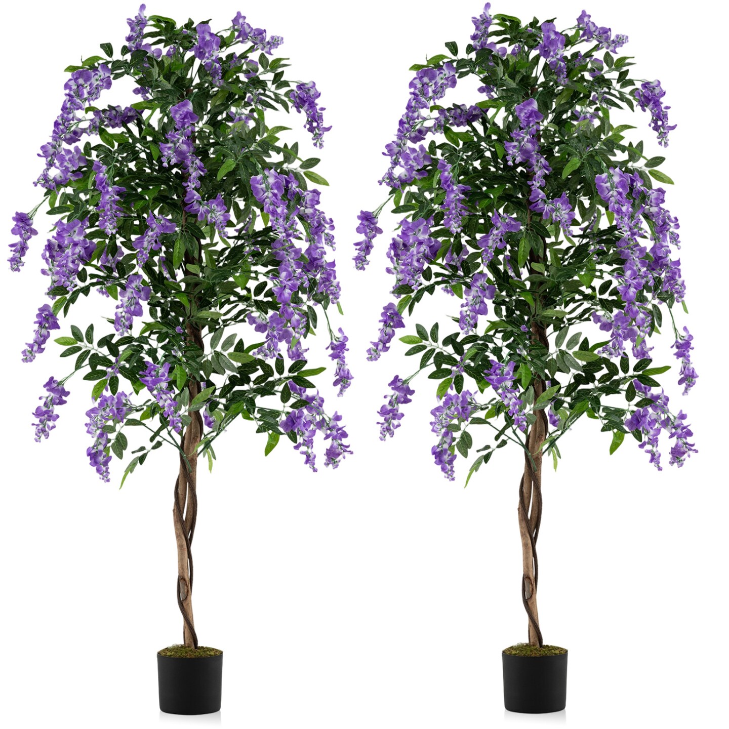 6 FT Artificial Wisteria Tree with Purple Flowers and Natural Trunk