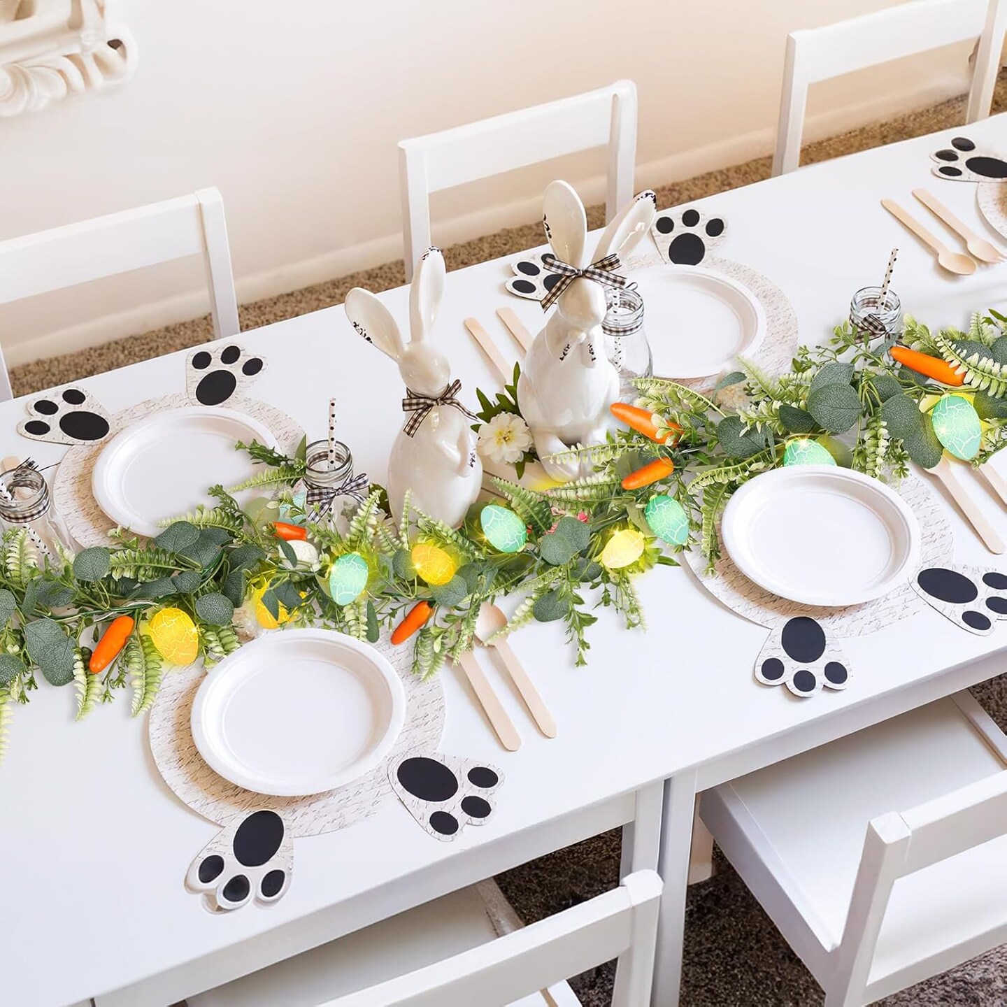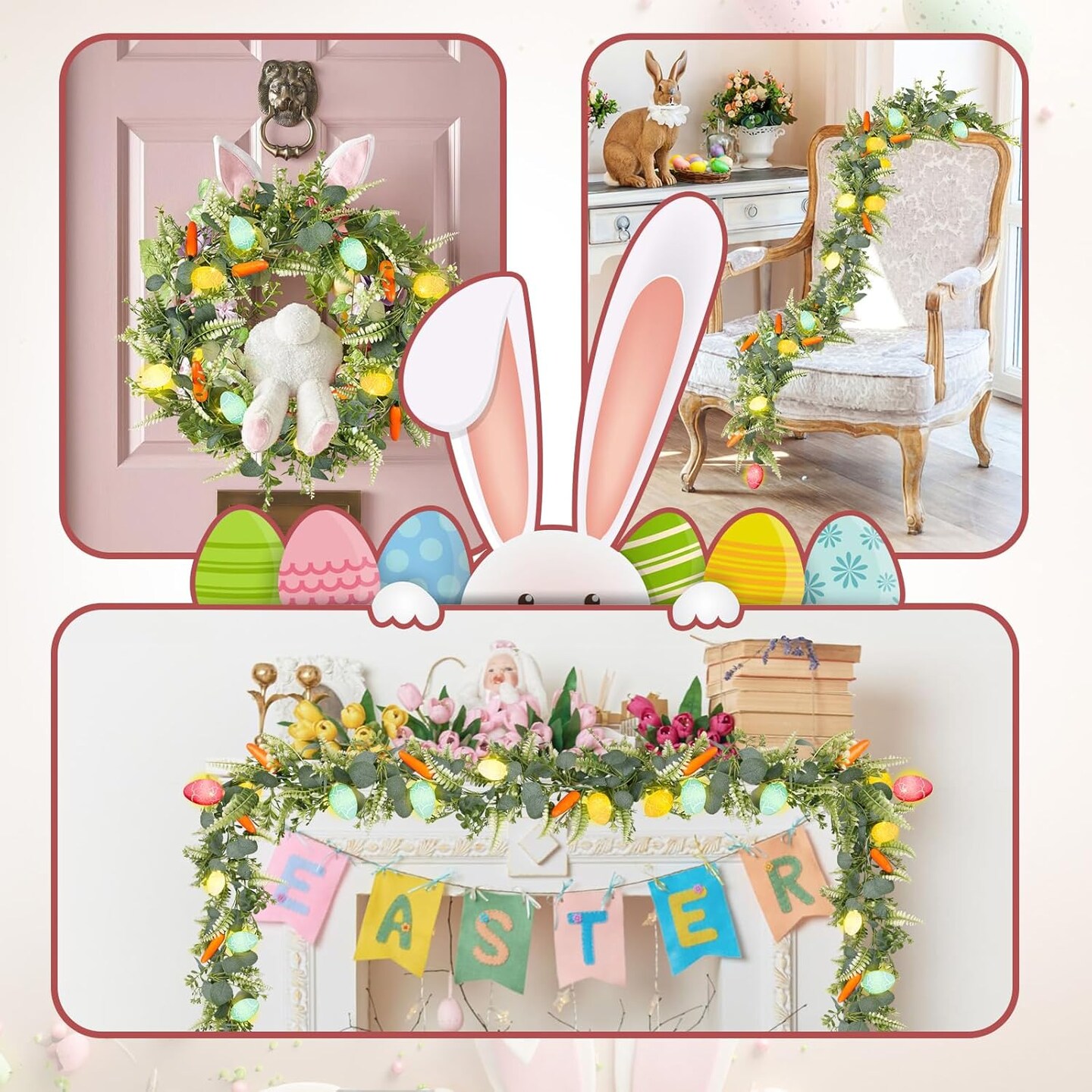 6 ft Easter Garland – Artificial Fern with 10 Glowing Eggs & 6 Carrots for Home Decor