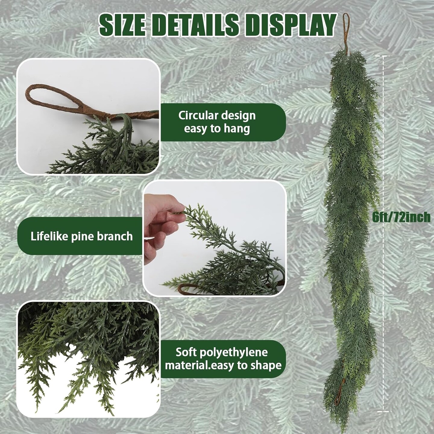 6 FT Realistic Christmas Cedar Garland Decoration