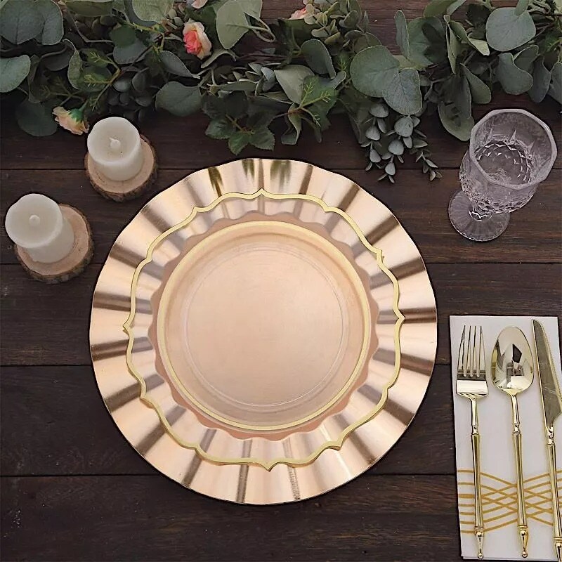 6 GOLD 13" Round Scalloped Trim Charger Plates