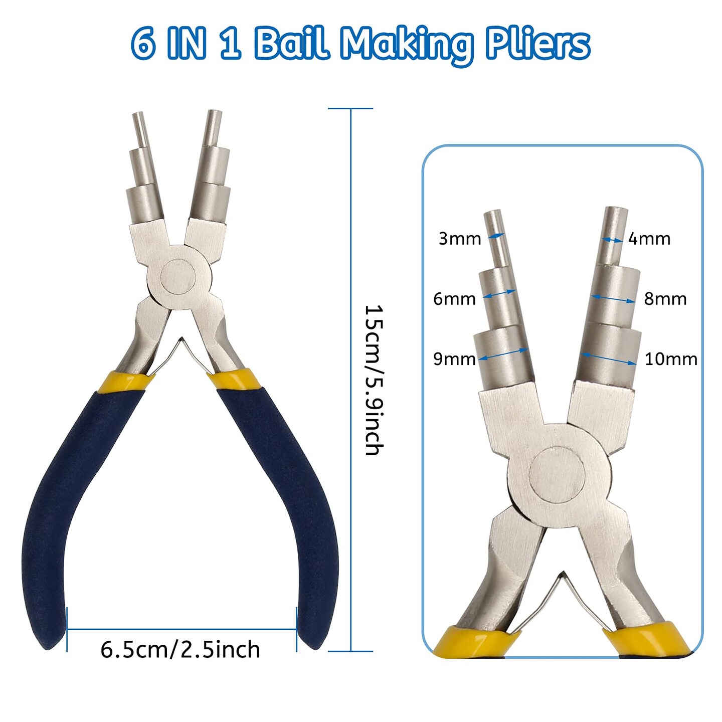 6 in 1 Bail Making Pliers, 3mm to 10mm Wire Bending Pliers with Non-slip Comfort Grip Handle for Jewelry Making, Loops, Jump Ring