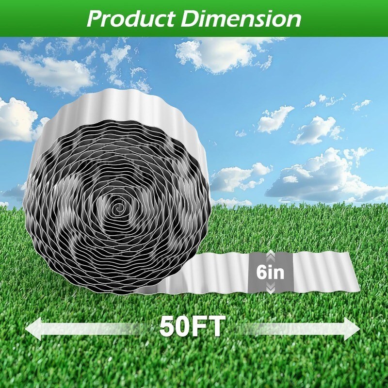 6 Inch x 50 Feet Galvanized Steel Garden Border Edging - Heavy-Duty Metal Fencing for Lawn, Flower Bed & Landscape