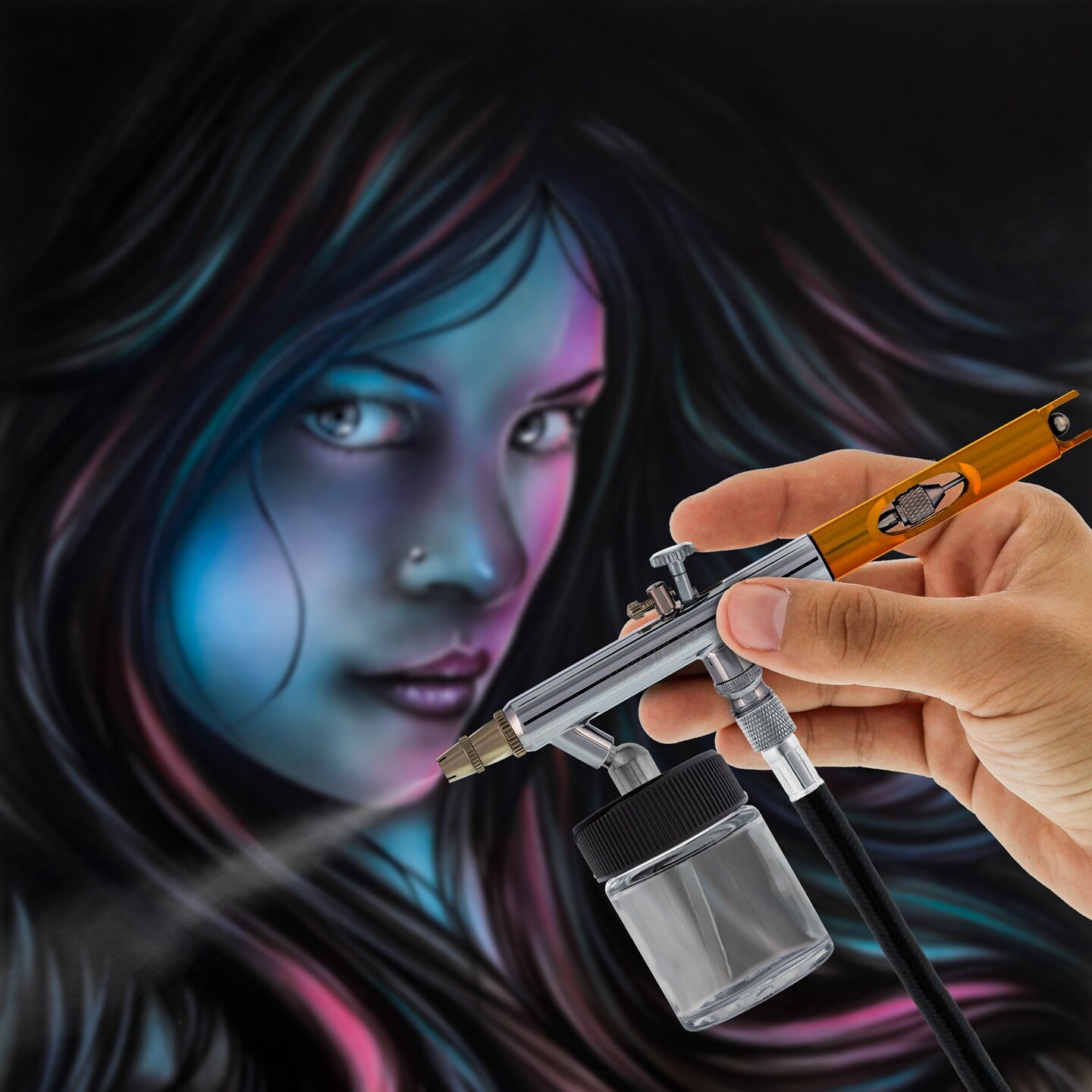 6 Master Performance S58 Dual-Action Siphon Feed Airbrushes with 0.35 mm Tips, 3/4 oz. Bottles, Color Coated Cutaway Handles & Storage Case