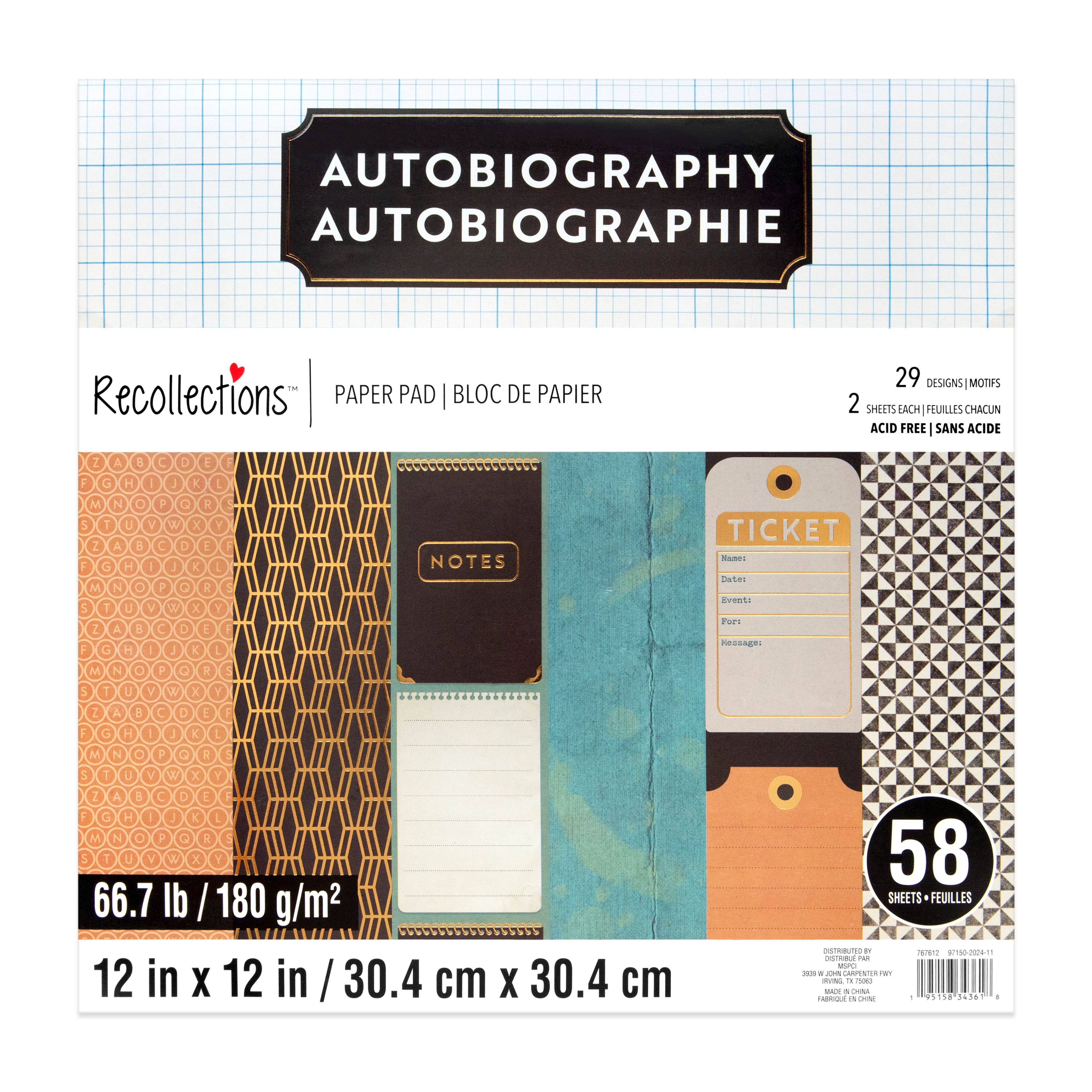 6 Pack: 12" x 12" Autobiography Paper Pad by Recollections™, 58 Sheets