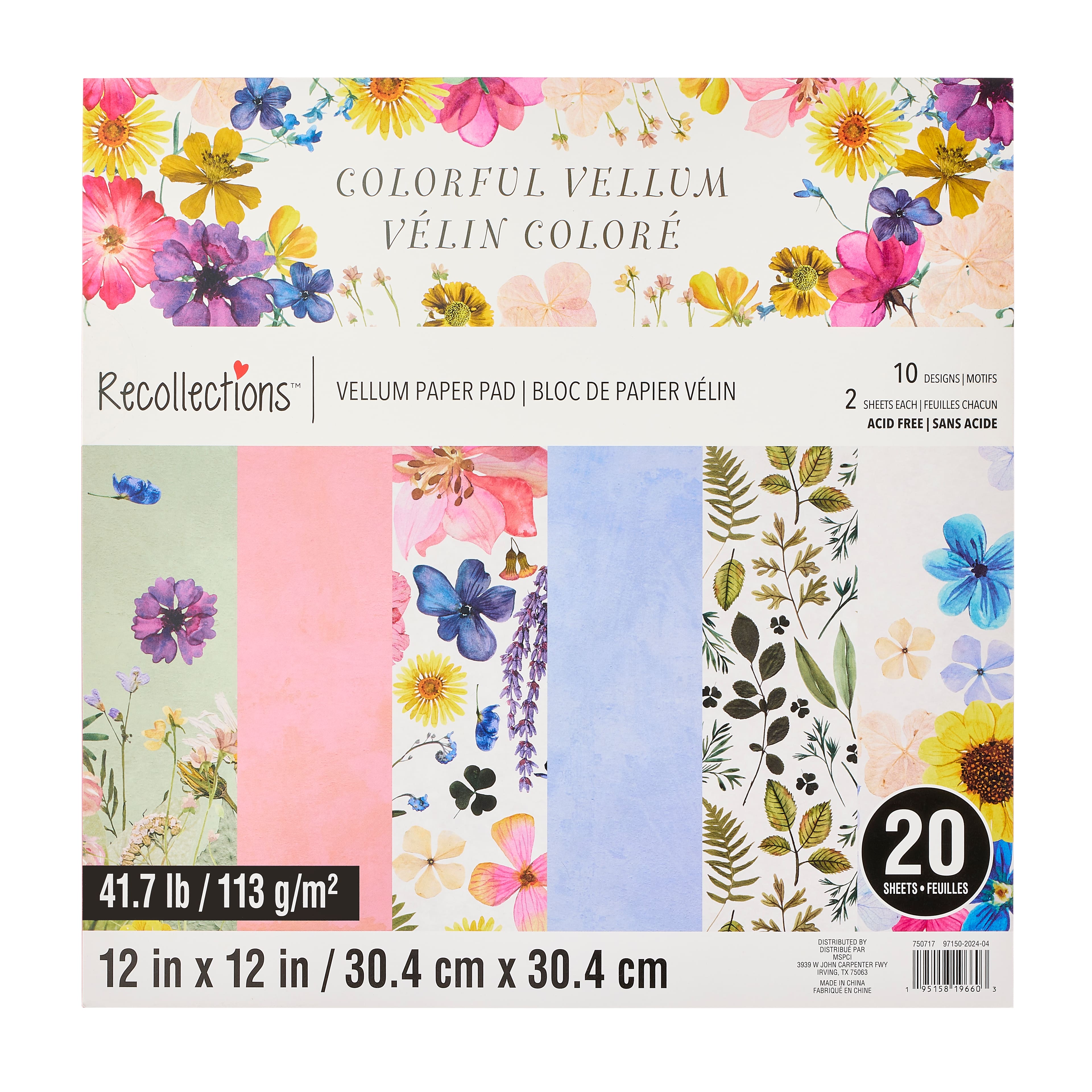 6 Pack: 12" x 12" Colorful Vellum Paper Pad by Recollections™, 20 Sheets