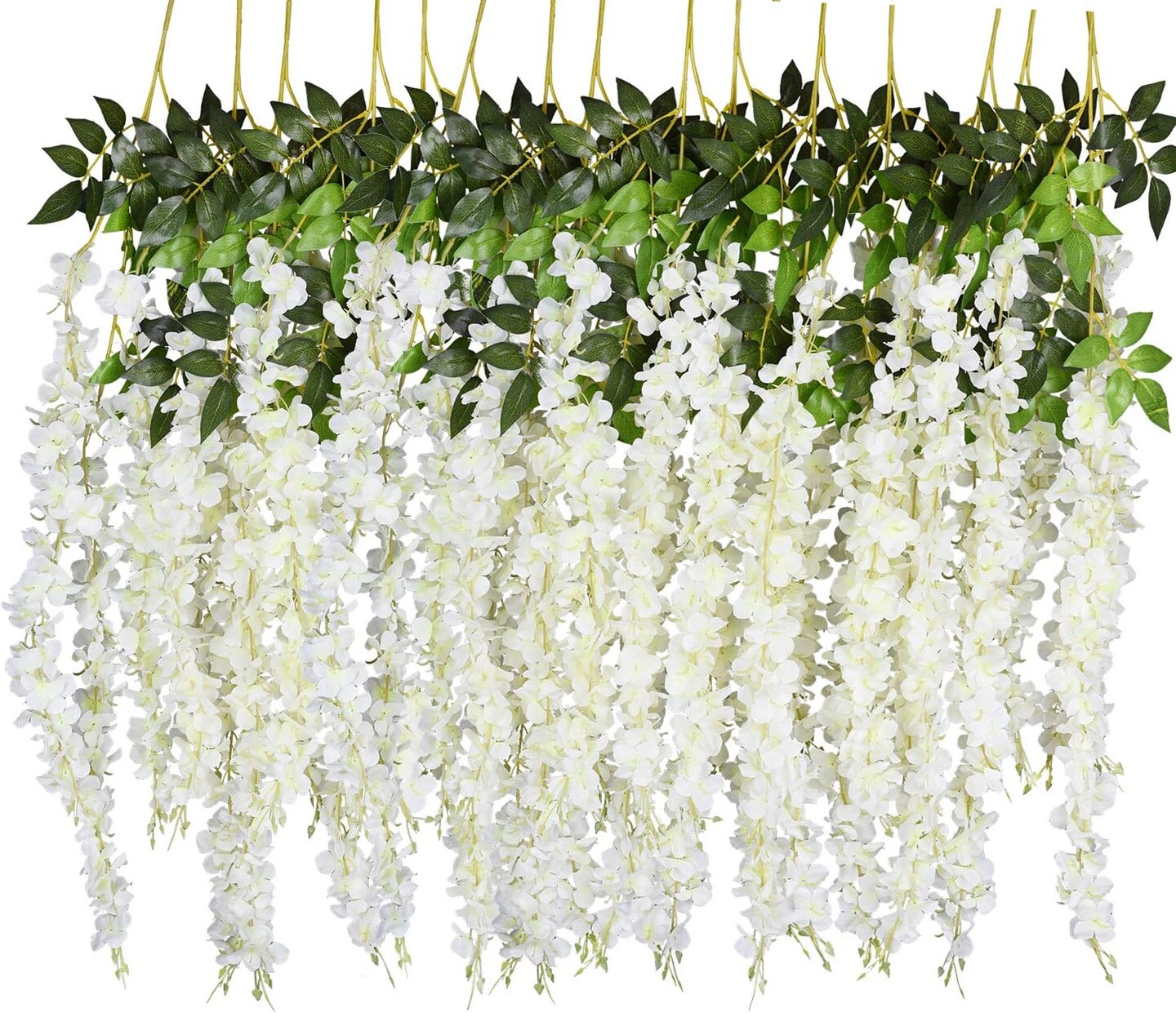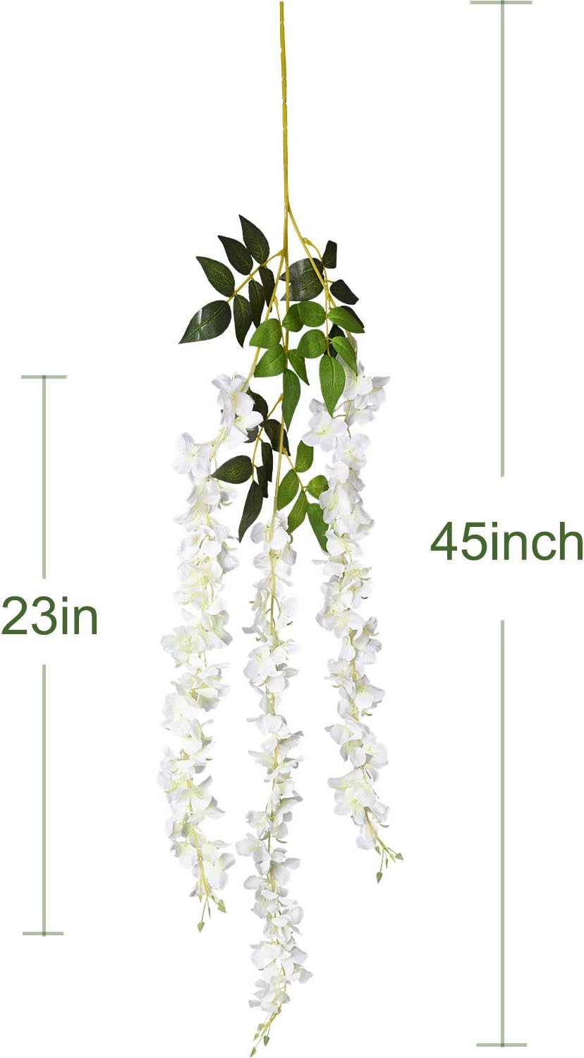 6 Pack 3.75 Feet/Piece Artificial Fake Wisteria Vine Ratta Hanging Garland Silk Flowers String Home Party Wedding Decor (6PCS-Large White Wisteria)
