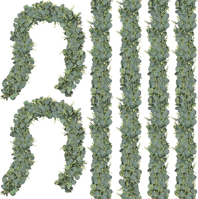 6 Pack 5.9Ft Eucalyptus Garland,Artificial Eucalyptus Leaves Table Greenery Garland Wreath Vines for Wedding Party Table Bedroom Wall Decor