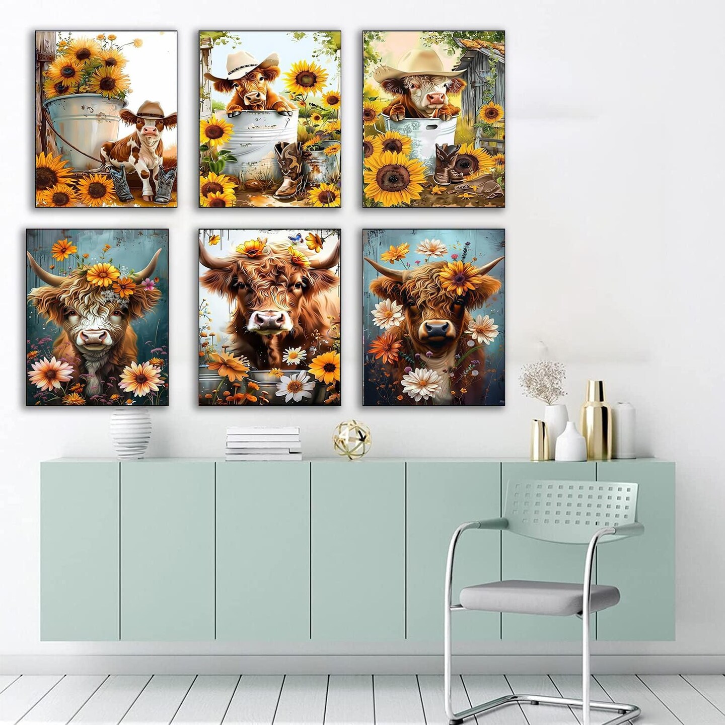 6 Pack 5D Diamond Painting Kits for Adults (E 6 Pack Cow) 15.7 x 11.8 x 0.1 inches