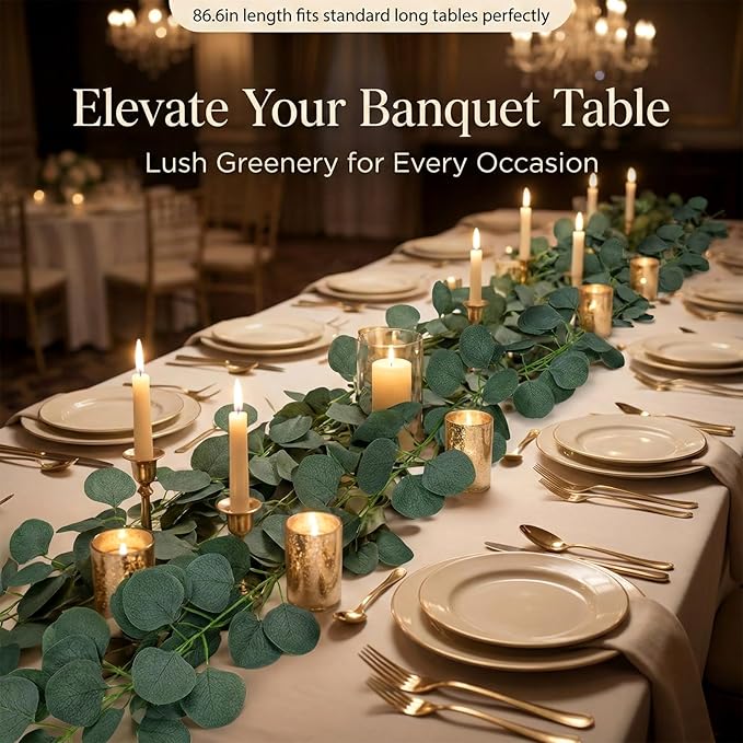 6 Pack 7.1FT Faux Eucalyptus Greenery Garland Hanging Vines for Bedroom Wall Decor Wedding Party Table Decoration Silk Artificial Leaves Plants Backdrop Indoor Outdoor