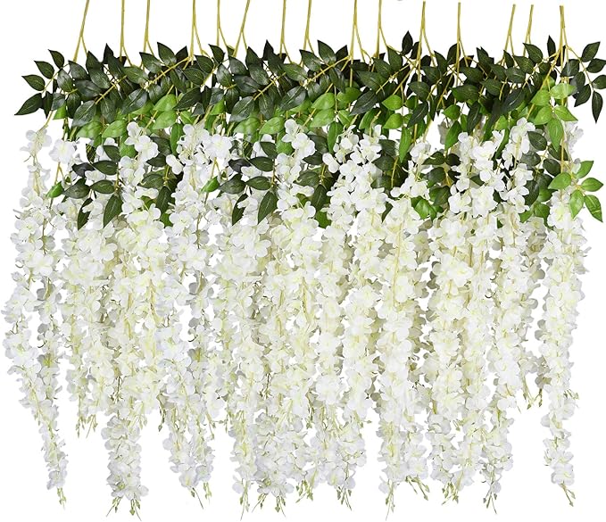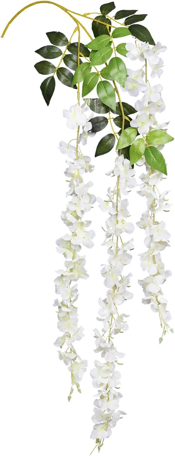 6 Pack Artificial Fake Wisteria Vine Ratta Hanging Garland, 3.75 Feet/Piece Silk Flowers String Home Party Wedding Decor (6PCS-Large White Wisteria)