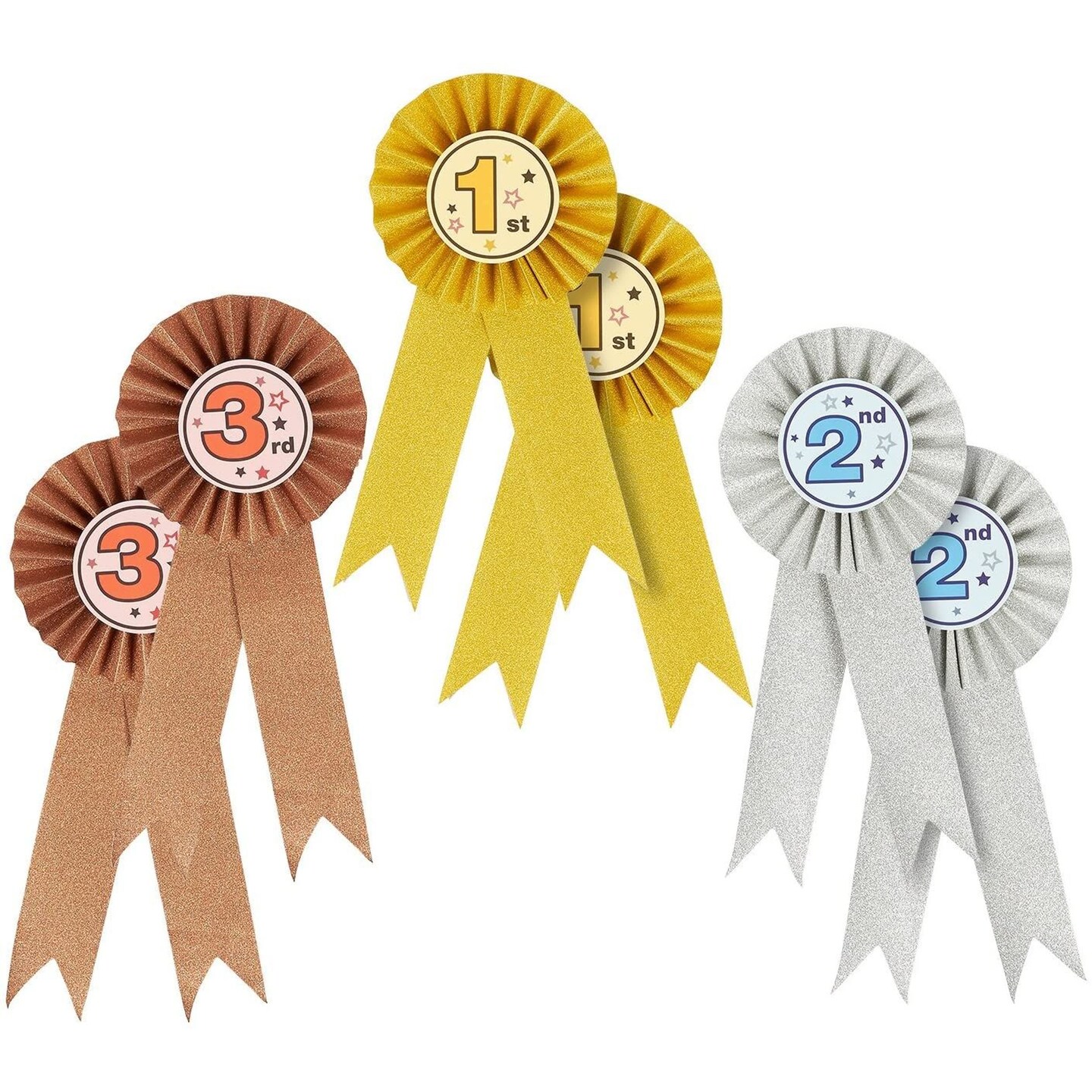 6-Pack Award Ribbons - Rosette Ribbons Award Set - Recognition Awards for 1st, 2nd, 3rd Place of Science Fairs, Ceremonies and Events Certificates, Gold, Silver, Bronze, 7.5 Inches