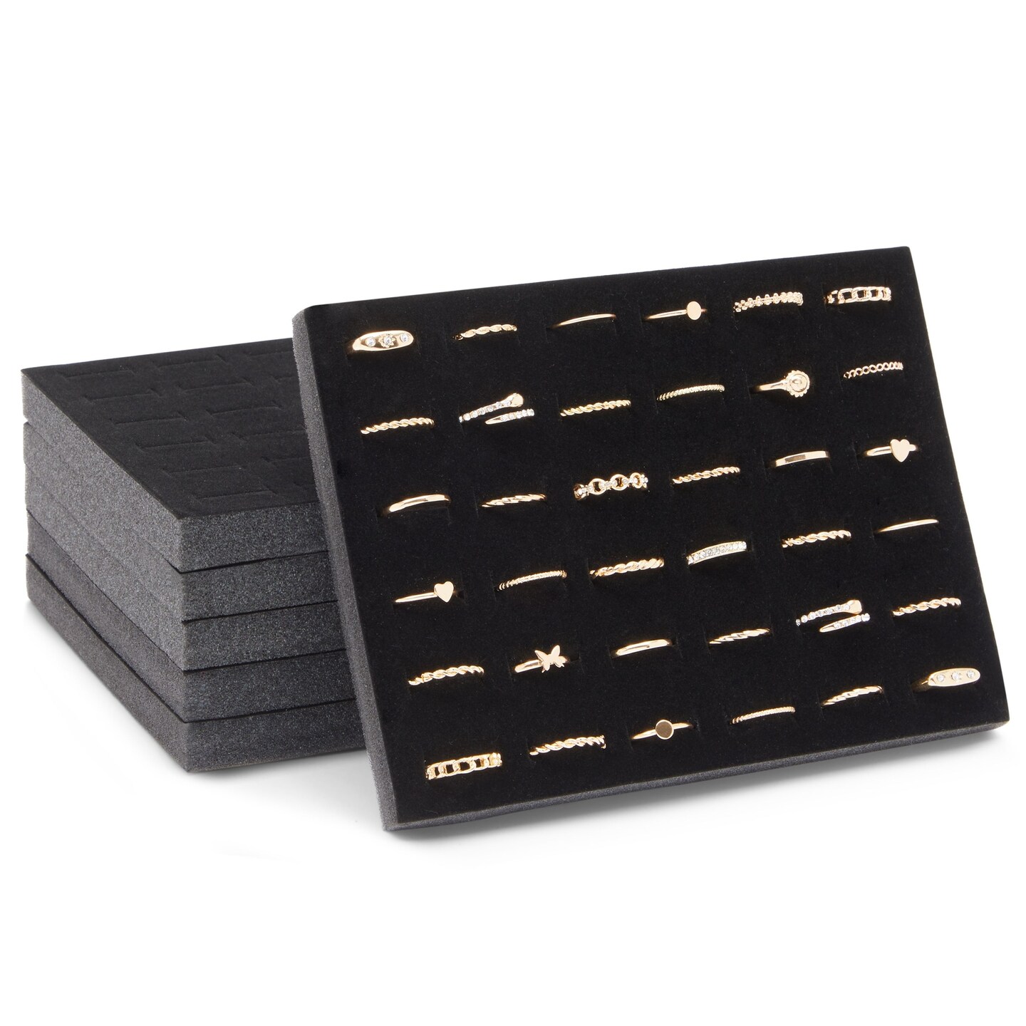 6 Pack Black Velvet Ring Organizer for Jewelry Displays and Cases, Retail, Travel, 36 Slot Foam Insert Stud Earring Holder (7.5 x 5.5 x 0.5 In)