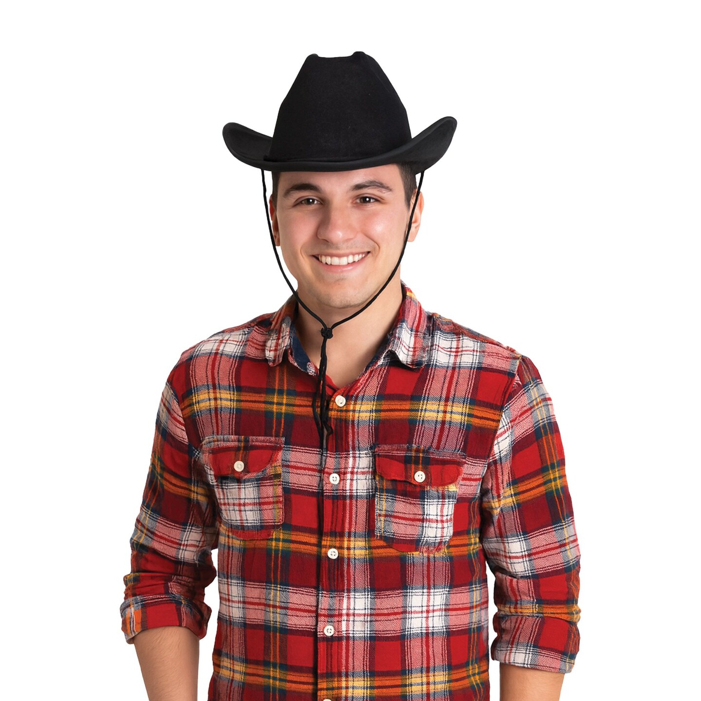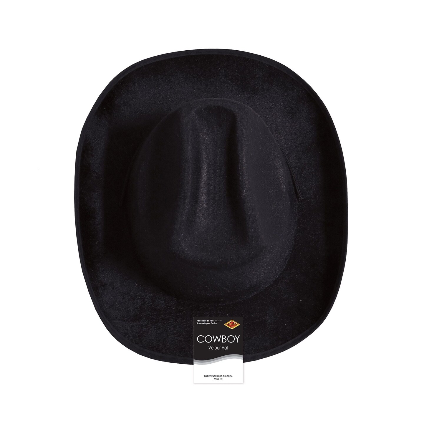 6 Pack Bulk Black Velour Cowboy Hat One Size Fits Most