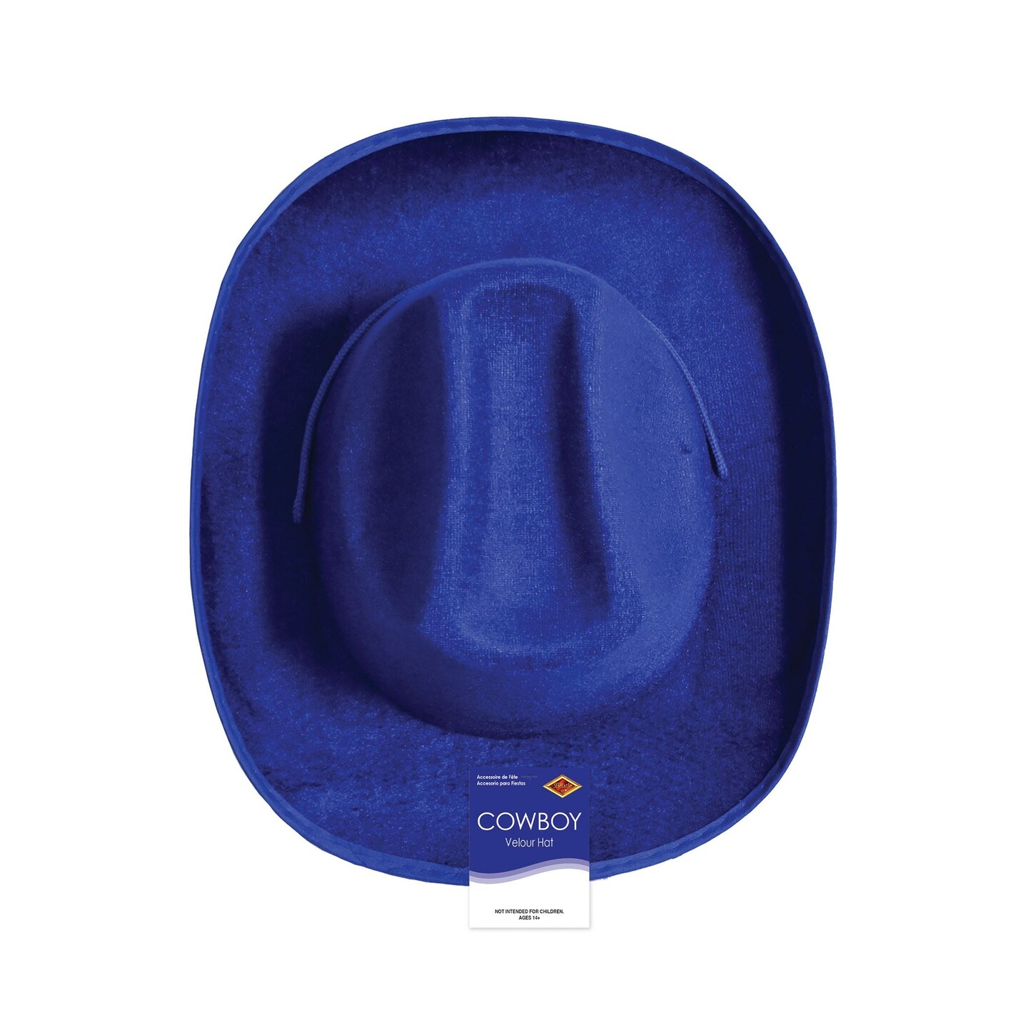 6 Pack Bulk Blue Velour Cowboy Hat One Size Fits Most