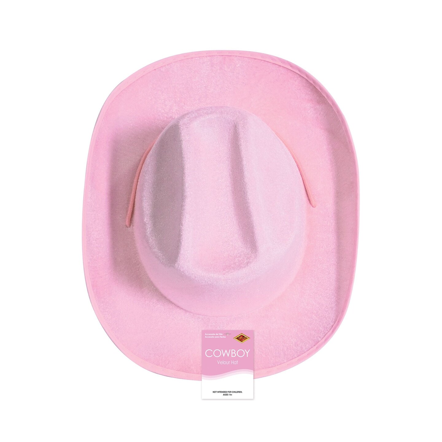 6 Pack Bulk Pink Velour Cowboy Hat One Size Fits Most