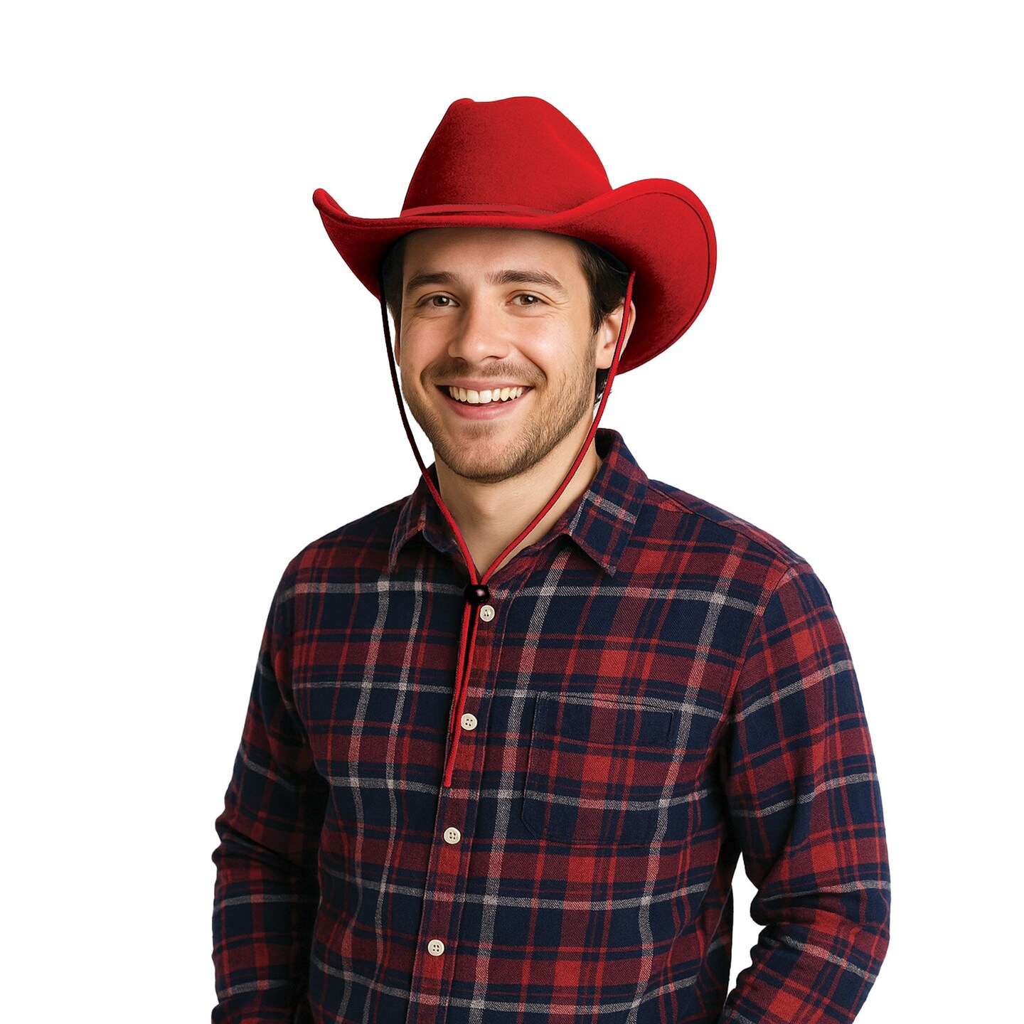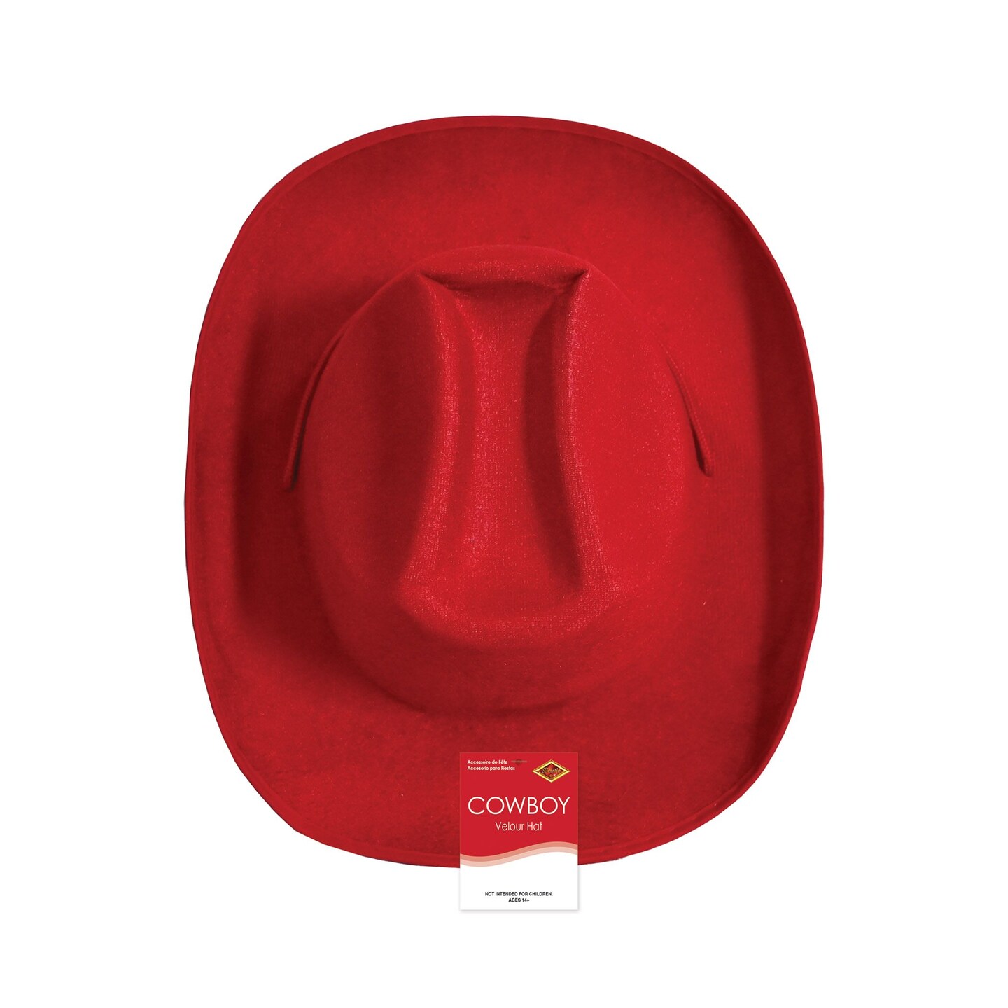 6 Pack Bulk Red Velour Cowboy Hat One Size Fits Most