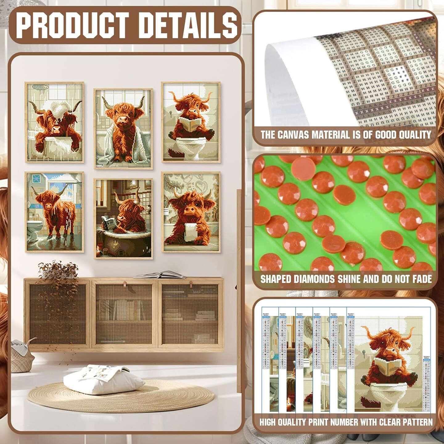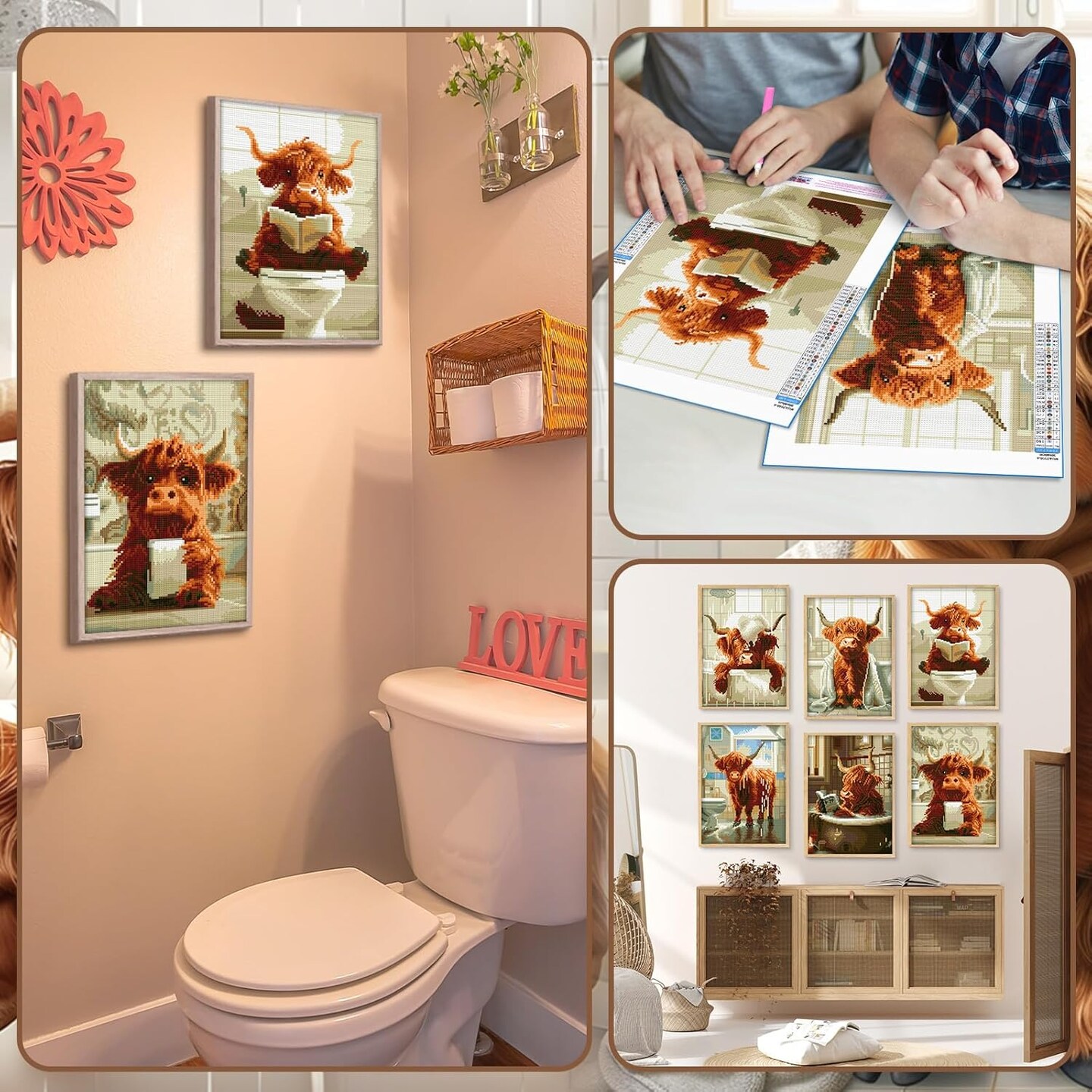 6 Pack Christmas Highland Cow Diamond Art Kit – Funny 5D DIY Round Drill Painting Set for Adults & Beginners | Floral Cow Gem Art for Home Wall Décor & Gifts