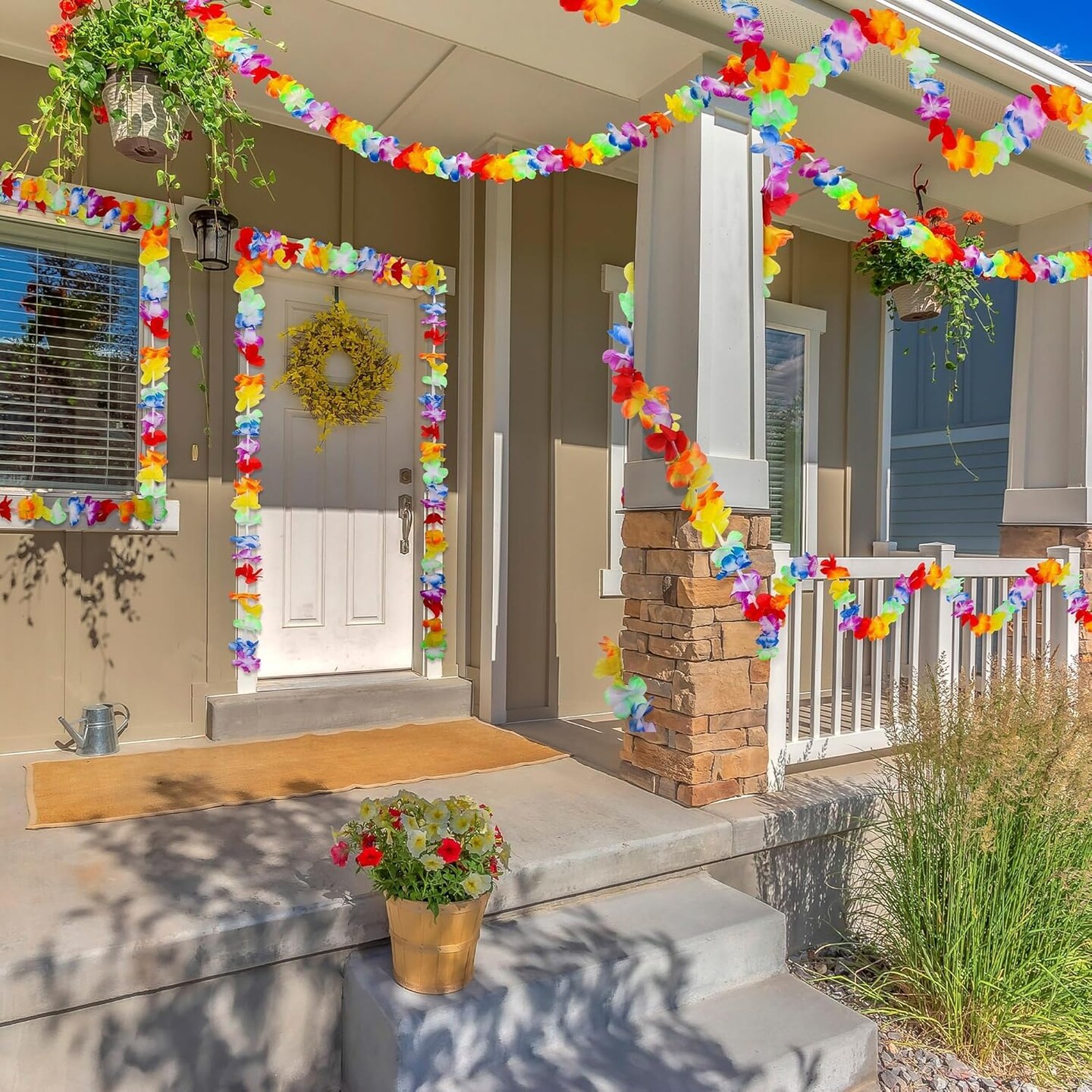 6 Pack Colorful Hawaiian Luau Tropical Flower Lei Garland Party Decorations