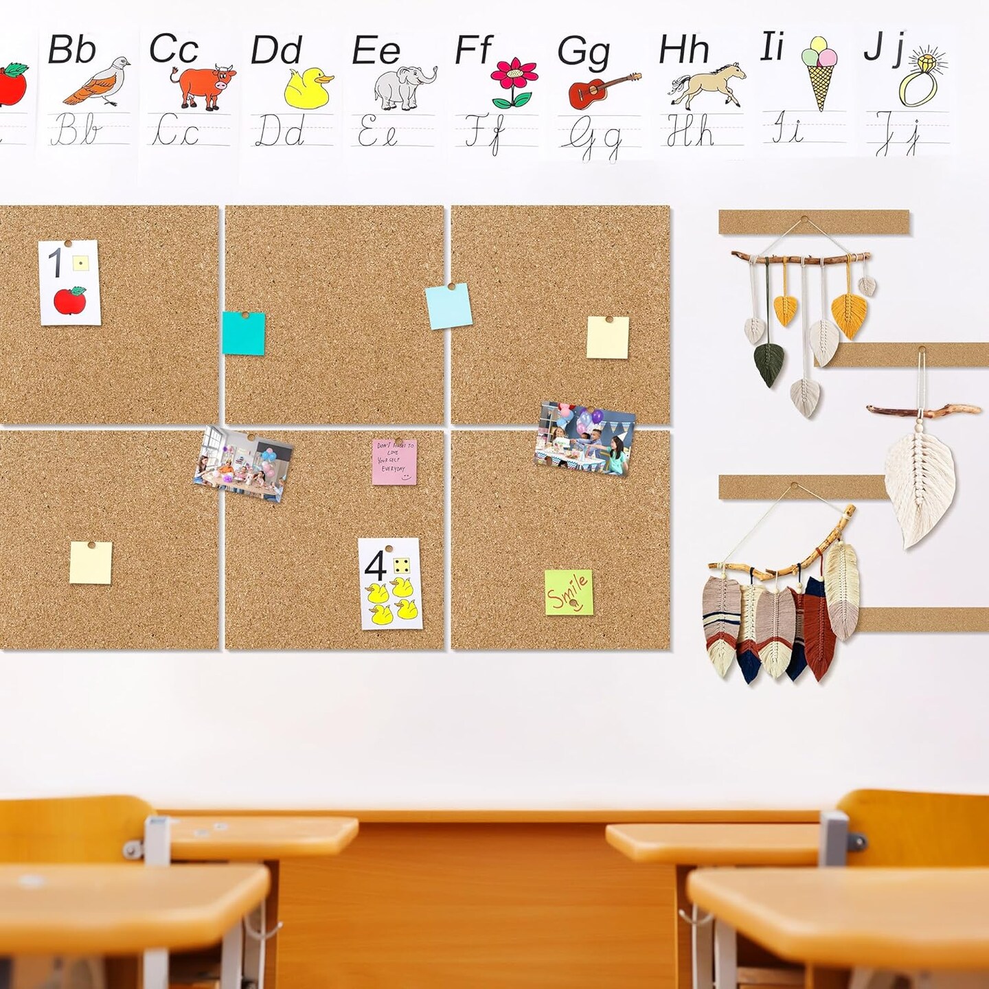 6 Pack Cork Boards 36" x 24" with 4 Frameless Cork Strips(Beige)