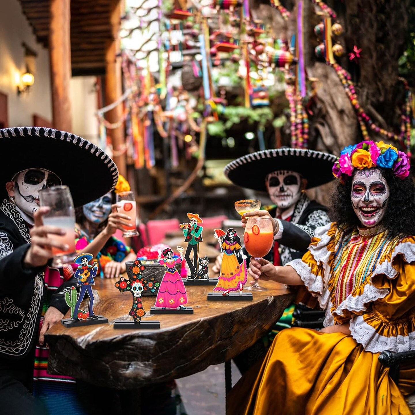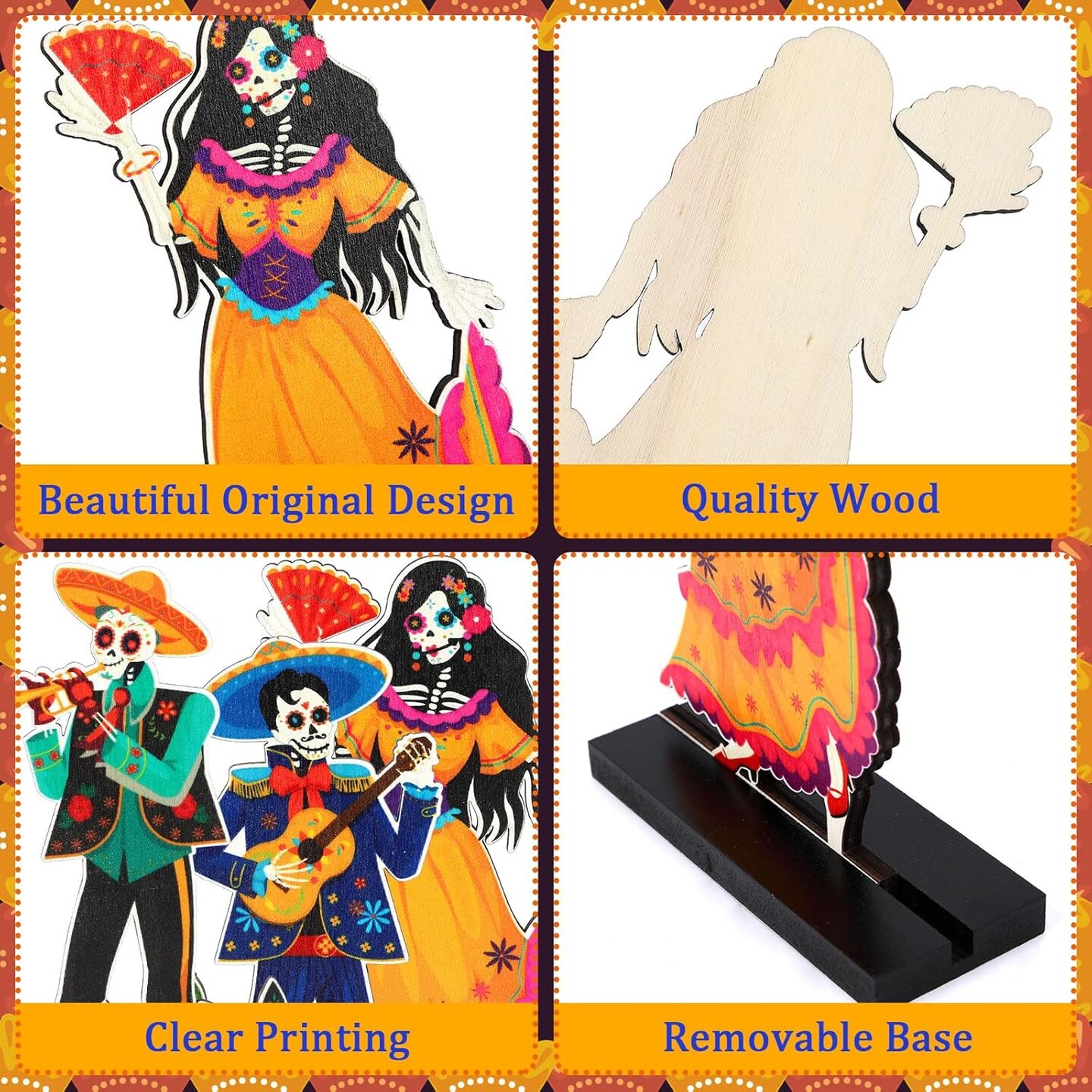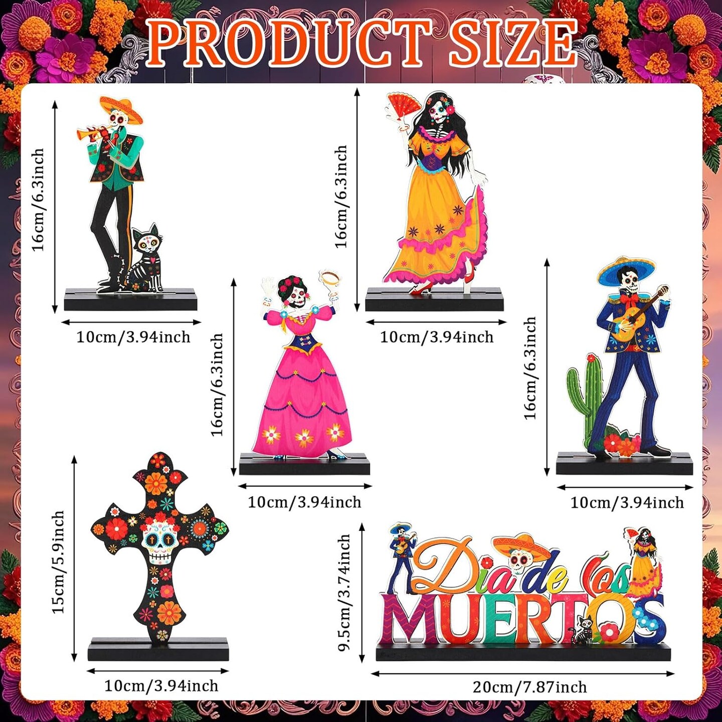 6 Pack Day of The Dead Decorations Wood Centerpiece Table Decorations Sugar Skull Calacas Dia De Los Muertos Decorations